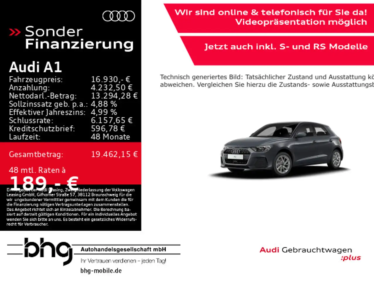 - Unter Raten verstehen wir den indikativen monatlichen Betrag bezogen auf das ausgeschriebene Finanzierungsbeispiel. Wir empfehlen dem Verbraucher, die Anzeige sorgfältig zu lesen. Der Verbraucher kann verschiedene Zahlungs- und/oder Finanzierungsformen bewerten, indem er den Werbetreibenden oder andere Finanzinstitute kontaktiert.