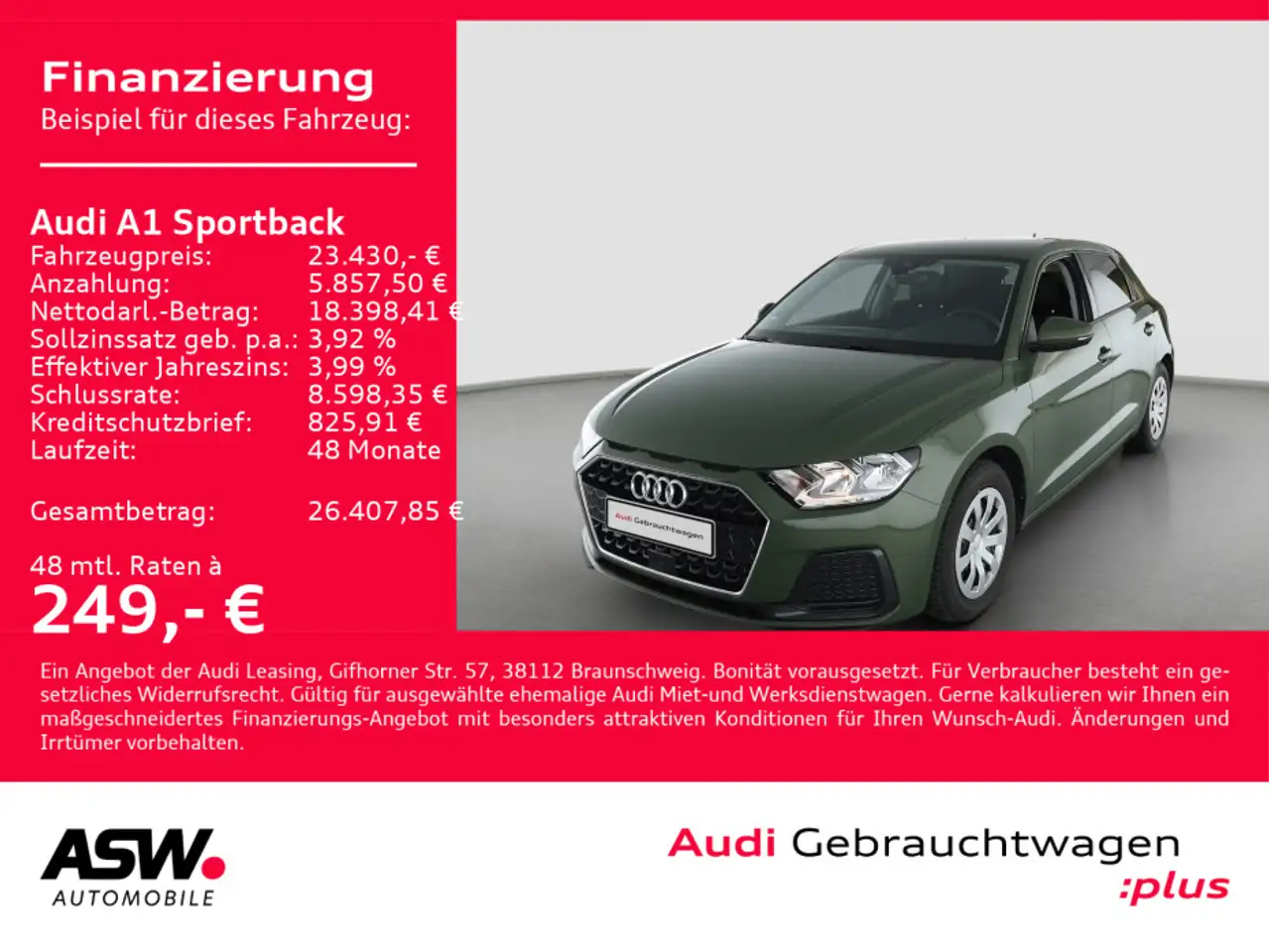 - Unter Raten verstehen wir den indikativen monatlichen Betrag bezogen auf das ausgeschriebene Finanzierungsbeispiel. Wir empfehlen dem Verbraucher, die Anzeige sorgfältig zu lesen. Der Verbraucher kann verschiedene Zahlungs- und/oder Finanzierungsformen bewerten, indem er den Werbetreibenden oder andere Finanzinstitute kontaktiert.