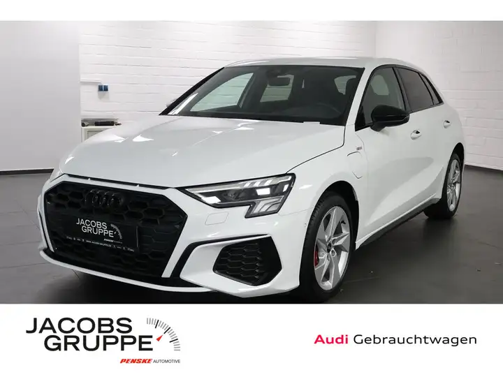 Seitenairbag vorn, Seitenairbag vorn mitte (Interaktionsairbag), Schließ-/Startsystem Advanced Key (Komfortschlüssel), Start-Stop-Knopf, Fahrassistenz-System: Bremsassistent (Audi pre sense front), Fußgänger-Schutzsystem, Fahrassistenz-System: Ausweich-Assistent, Fahrassistenz-System: Abbiege-Assistent links, Elektromotor 85 kW (Hybridantrieb), Elektromotor 80 kW (Hybridantrieb), Nichtraucher-Paket, Sonderlackierung Ibis-Weiß, Einstiegsleisten mit Aluminiumeinlage und Schriftzug, beleuchtet, Außenspiegel elektr. verstell- und heizbar, beide, Außenspiegel konvex, rechts, Außenspiegel asphärisch, links, Außenspiegel schwarz, Tagfahrlicht, Licht- und Regensensor, Dachkantenspoiler S-line, Stoßfänger Sport-Design (S-line), Verglasung hinten abgedunkelt (Privacyverglasung), Frontscheibe Wärmeschutzverglasung, Radioempfang digital (DAB), Universal-Schnittstelle Bluetooth, Audi connect (Notruf- und Assistance-System), Multi-Media-Interface MMI Basic Plus / MMI Radio Plus, Kombiinstrument digital, Reifendruck-Kontrollsystem, Innenausstattung: Dekoreinlagen Akzentteile in der Armaturentafel in Glasoptik schwarz, Geschwindigkeits-Regelanlage (Tempomat), Geschwindigkeits-Begrenzeranlage, Airbag Fahrer-/Beifahrerseite, Kopf-Airbag-System (Sideguard), Airbag Beifahrerseite abschaltbar, Dachhimmel Stoff, Fußmatten Velours, Komfort-Klimaautomatik 2-Zonen, Standklimatisierung, Sitzbezug / Polsterung: Stoff Dynamik / Routine, Sportsitze vorn, Rücksitzlehne geteilt/klappbar, Kindersicherung elektr. betätigt, Sitzbelegungserkennung für Sicherheitsgurte, Make-up-Spiegel beleuchtet, Wegfahrsperre (elektronisch), Akustischer Fußgängerschutz, Außensound (e-sound), Steckdose (12V-Anschluß) in Mittelkonsole vorn, Isofix-Aufnahmen für Kindersitz, Anti-Blockier-System (ABS), Bremssättel Rot lackiert, Sport-Fahrwerk, Audi Drive Select, Fahrassistenz-System: Spurverlassenswarnung, LM-Felgen 8x17 (5-Arm), Reifen-Reparaturkit, Lenksäule (Lenkrad) mech. Höhen-/Längsverstellung, Servolenkung elektronisch gesteuert, Elektron. Stabilitätskontrolle (ESC), Antriebsart: Frontantrieb, Ladekabel mit Schukostecker, Ladekabel mit Industriestecker (16 A / 400 V), Ladekabel für öffentliche Ladesäulen (e-tron), e-tron Aufladesystem, Schadstoffarm nach Abgasnorm Euro 6d, Otto-Partikelfilter (OPF), Getriebe 6-Gang - Doppelkupplungsgetriebe S-tronic, Hybrid, Hybrid 180 kW (Motor 1,4 Ltr. - 110 kW TFSI).