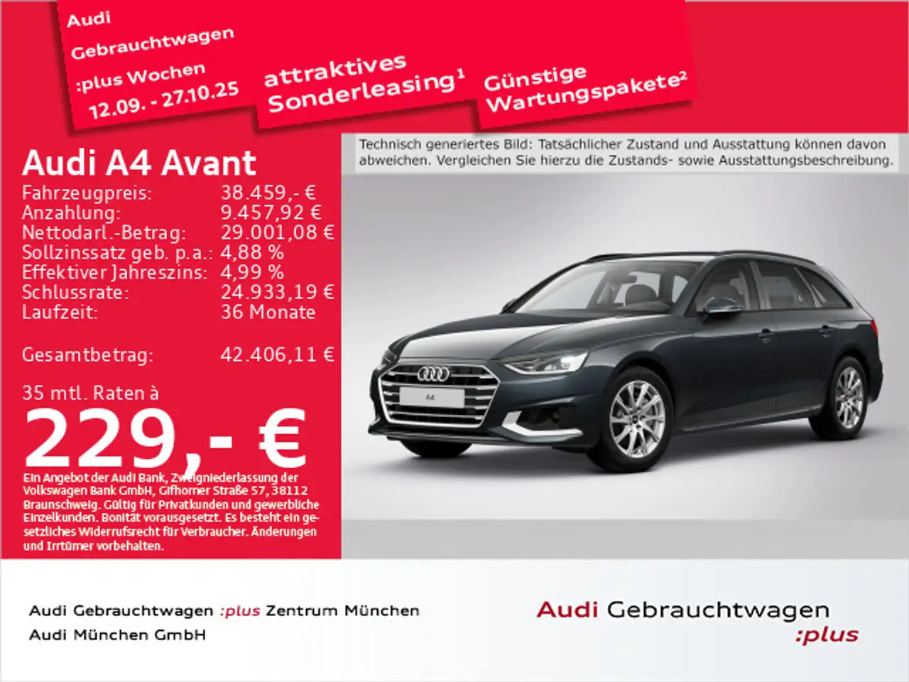 - Unter Raten verstehen wir den indikativen monatlichen Betrag bezogen auf das ausgeschriebene Finanzierungsbeispiel. Wir empfehlen dem Verbraucher, die Anzeige sorgfältig zu lesen. Der Verbraucher kann verschiedene Zahlungs- und/oder Finanzierungsformen bewerten, indem er den Werbetreibenden oder andere Finanzinstitute kontaktiert.