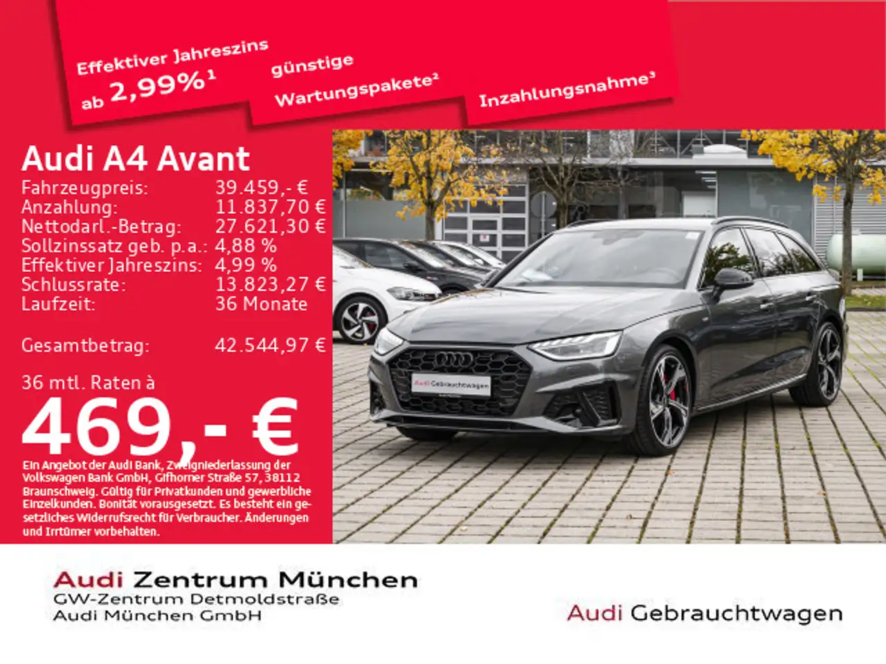 - Anbieterbank: Audi Bank - Zweigniederlassung der Volkswagen Bank GmbH / Gifhorner Str. 57 / 38112 Braunschweig