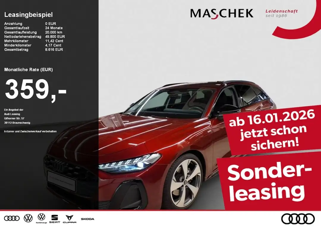 Ständig über 250 Jahreswagen auf Lager! Wir finden den perfekten Jahreswagen für Sie! Sehr gerne nehmen wir auch Ihren Gebrauchtwagen in Zahlung.Die Fahrzeuge weisen dem Fahrzeugalter und der Laufleistung bedingte Gebrauchsspuren auf. Sonderfinanzierung und Sonderleasing über die Audi Financial Service möglich! Die im Internet gemachten Angaben sind unverbindliche Beschreibungen. Sie stellen keine zugesicherten Eigenschaften dar. Der Verkäufer haftet nicht für Irrtümer Eingabefehler und Datenübermittlungsfehler. Änderungen vorbehalten.