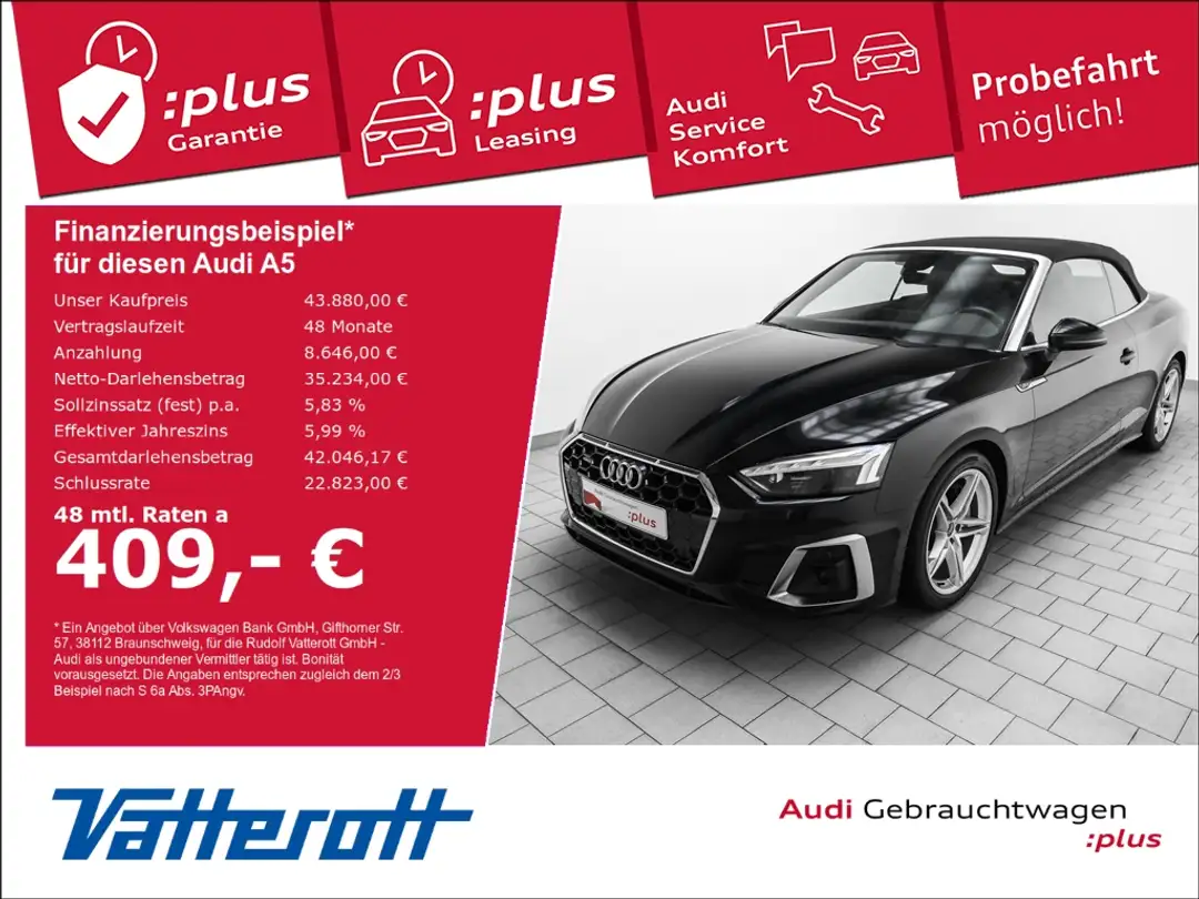 - Audi A5 Cabrio 45 TFSI S Line Quattro Navi Kamera Virtuell