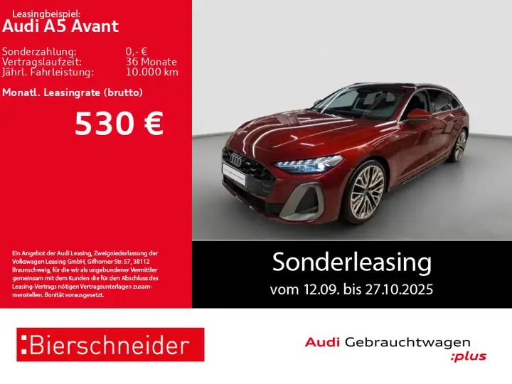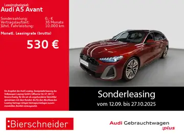 GARANTIE, ANSCHLUSSGARANTIE, Laufzeit 3 Jahre im Anschluss a. d. Herstellergar., max. Gesamtlaufl. 100.000 km, HIGHLIGHTS, NAVIGATIONSSYSTEM, LM-Felgen 20", Anhängekupplung mechanisch schwenkbar, Led-Scheinwerfer plus, RÜCKFAHRKAMERA, Audi PHONE BOX, Handyvorbereitung, ASSISTENZ-SYSTEME, ACC-ABSTANDSTEMPOMAT-ADAPTIVE CRUISE CONTROL, Fernlichtassistent LIGHT ASSIST, Müdigkeitserkennung, NOTBREMSASSISTENT, SPURHALTE-ASSISTENT, VERKEHRSZEICHENERKENNUNG, ABBIEGE-ASSISTENT, NOTRUFSYSTEM, Einparkhilfe PDC vorne und hinten, Assistenzpaket Fahren und Parken, AUSWEICH-ASSISTENT, Einparkhilfe plus mit Distanzanzeige, Parkassistent plus, Spurverlassenwarnung, Verkehrszeichenbasierter Geschwindigkeitsbegrenzer, INFOTAINMENT & MULTIMEDIA, Audi Connect, Audi VIRTUAL COCKPIT PLUS, DAB-Digitaler Radioempfang, SOUNDSYSTEM, Audi Smartphone Interface, INDUKTIONSLADEN für Smartphones (Kabelloses Aufladen), SPORTPAKETE, S LINE EXTERIEUR, FAHRWERK, S LINE Sportfahrwerk, KOMFORT, Mittelarmlehne vorn, 3-Zonen Klimaautomatik, Klimatisierungspaket, ELEKTRISCHE HECKKLAPPE, SITZHEIZUNG vorne, Fensterheber elektrisch vorne + hinten, Multifunktion-Plus-Sport-Lederlenkrad oben und unten abgeflacht mit Schaltwippen, Außenspiegel beheizbar, Außenspiegel el. anklappbar und abblendend, Außenspiegel elektrisch einstellbar, Innenspiegel automatisch abblendend, Scheiben seitlich und hinten in Wärmeschutzverglasung, Wärmeschutz- und Akustikverglasung Frontscheibe, Zentralverriegelung mit Fernbedienung, Lendenwirbelstütze/n, INNEN-AUSSTATTUNG, SPORTSITZE, Sitzbezüge Stoff, AUSSEN-AUSSTATTUNG, Dachreling silber/Alu-Optik, Abgedunkelte Scheiben ab B-Säule, LED-Heckleuchten pro, Metallic-Lackierung, LICHT & SICHT, Projektionsleuchte in den Außenspiegeln, TECHNIK, Reifendruckkontrolle, Audi DRIVE SELECT, Telefonablage mit induktiver Ladefunktion und Mobilfunk-Koppelantenne, USB-Anschlüsse mit Ladefunktion in erster und zweiter Sitzreihe, Servolenkung, elektr. Wegfahrsperre, UMWELT, Otto-Partikelfilter (OPF), GETRIEBE, 7-Gang-Automatikgetriebe, SICHERHEIT, FRONT-Airbags, INTERAKTIONS-Airbag vorne, KOPF-Airbags, SEITEN-Airbags vorn, Kindersitzverankerung i-Size auf Beifahrersitz und äußeren Fondsitze, Top Tether, Airbag-Deaktivierungsschalter, ABS - ESP, CENTER-Airbag, Aufmerksamkeitsassistent, AUSSTATTUNGSPAKETE, ASSISTENZPAKET, Ausstattungslinie S line, Komfortpaket, Sonstiges, MMI experience plus, Tech, Räder Audi Sport Vielspeichen-S schwarz metallic neodymgold matt glanzgedreht 8.5x20, Assistenzpaket Schutz- und Warnsysteme