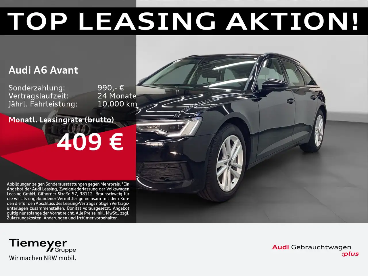 Garantie, Anschlussgarantie 3 Jahre max. 100.000 km, Getriebe / Antrieb, quattro, S tronic, Pakete, Ablage Paket, Ambiente Licht Paket plus, Assistenz Paket Plus, Business Paket, Kindersicherheits Paket, Airbags, Fahrer-/Beifahrerairbag, Kopfairbag vorn und hinten, Seitenairbag vorn und hinten, Sicherheit, 360 Grad Kamera - Area View, LED Scheinwerfer, Matrix LED Scheinwerfer, Adaptiver Fahrassistent (AFA), Ausweichassistent, Querverkehrsassistent, Spurwechselassistent Audi side assist, Tagfahrlicht, Abbiegeassistent, Akustisches Fahrzeug-Warnsystem, Antiblockiersystem ABS, Antischlupfregelung ASR, Audi connect Notruf & Service, Audi pre sense front, Audi pre sense rear, Ausstiegswarnung, Beifahrerairbag Deaktivierung, dynamisches Blinklicht, Einparkhilfe vorn und hinten mit Parklenkassistent, Elektrisches Stabilitätsprogramm ESP, Elektronische Bremskraftverteilung EBV, Geschwindigkeitsbegrenzer, ISOFIX Kindersitzbefestigung, ISOFIX Kindersitzbefestigung vorn, Kreuzungsassistent, Motor-Schleppmoment-Regelung MSR, Notfall Assist, Progressivlenkung, Reifendruckkontrolle, Remote Parkassistent plus, top tether Kindersitzverankerung hinten, Verkehrszeichenerkennung, Wegfahrsperre, Audio & Kommunikation, Audi connect Navigation & Infotainment, MMI Navigation plus mit MMI touch response, Navigationssystem, Audi phone box, Audi phone box mit Wireless Charging, Audi smartphone interface, Audi sound system, LTE-Unterstützung für Audi phone box, Top-Infotainment Premium, Audi connect Remote & Control, Audi music interface, Digitaler Radioempfang DAB+, Vorbereitung für Functions on Demand, Komfort, Head-Up Display, Lendenwirbelstütze Fahrer-/Beifahrersitz elektrisch 4-Wege, Sitzheizung, Standheizung/-lüftung programmierbar, Gepäckraumklappe elektrisch öffnend und schließend, Komfortklimaautomatik 4-Zonen, Standklimatisierung, Audi drive select, Automatisch abblendender Innenspiegel rahmenlos, Automatische Distanzregelung ACC, Effizienzassistent, Fensterheber elektrisch, Komfortmittelarmlehne vorn, Komfortschlüssel / Keyless Entry mit sensorgesteuerter Gepäckraumentriegelung, Servotronic, Zentralverriegelung, Interieur, Sitzbezüge in Stoff, Audi virtual cockpit, Multifunktionslederlenkrad beheizbar mit Schaltwippen, Rücksitzlehne geteilt/klappbar, Exterieur, Vorbereitung für Anhängerkupplung, Außenspiegel elektrisch verstell-/anklappbar beheizt automatisch abblendend, Beifahrerspiegelabsenkung, Dachreling schwarz, Heckspoiler, LED Rückleuchten, Leichtmetallfelgen 18 Zoll 5-Doppelarm-Design, Scheinwerferreinigungsanlage SRA, Start-Stop System, Sonstiges, Sitzbelegungserkennung für den Beifahrerairbag, Metallic-Lackierung