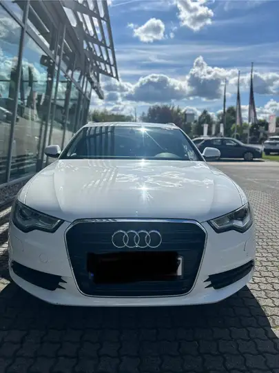Dieser gepflegte Audi A6 Kombi aus 2014 präsentiert sich in elegantem Weiß-Metallic mit Volllederaustattung im Innenraum.