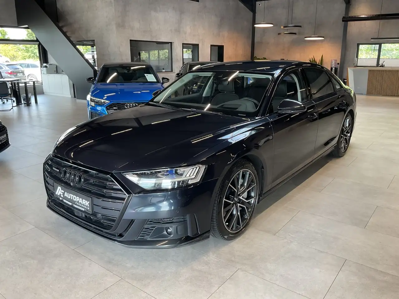 Aktiv Fahrwerk (Erweiterung adaptive air suspension), Assistenz-Paket Stadt (Insassen-Schutzsystem, 360-Grad-Rundumschutz, Bremsassistent, Kreuzungs-Assistent, Ausstiegswarnung, Querverkehrs-Assistent Heck, Spurwechselassistent), Audi music interface im Fond, Design-Paket: advanced sarderbraun (Alcantara-Paket, Leder-Paket, Voll-Leder, Sonnenschutzrollo an Heckscheibe und Seitenscheibe hinten elektr., Komfort-Individualkontursitz-Paket, Mittelarmlehen vorn Komfortausstattung, Türverkleidungseinsätze in Alcantara, Sitzbezug Leder Valcona Naturleder, Dekoreinlagen unten Aluminium gebürstet, Ambientebeleuchtungs-Paket plus, Multifunktionslederlenkrad mit Schaltfunktion), Fondsitz-Paket Einzelsitze (2+1 Sitze), Fußstützen hinten, Fzg. ohne DVD-Laufwerk, Gepäckraum-Paket, Ionisator zur Luftreinigung (Air-Quality-System), Kamerasystem Umgebungsansicht (Top View), Kombiinstrument digital (virtual cockpit plus), Leseleuchten im Fond zusätzlich, LM-Felgen 9x20 (5-V-Speichen, Stern-Design, Anthrazit-Schwarz, glanzgedreht), Optik-Paket schwarz mit Audi Ringe in schwarz, Perleffekt-Lackierung, Radioempfang digital (DAB), Rear Seat Remote Bedieneinheit (Zentraleinheit im Fond), Reifendruck-Kontrollsystem, Sender für Garagentoröffner (integriert), Servoschliessung für Türen, Sicherheits-Paket, Sitzbelüftung und Massagefunktion vorn und hinten, Sound-System Bang & Olufsen Advanced, Sport-Exterieur-Paket (Stoßfänger S-line Sport-Design), Standheizung, Steckdose 230V, Technologie-Paket Better Vision (Matrix-LED-Scheinwerfer mit Laserlicht, Matrix Heckleuchten OLED, Adaptive Scheibenwischer beheizt, Head-up-Display), Telefonie im Fond ohne Wireless Charging (Audi Phone Box), Wärme-Komfort-Paket vorn und hinten (Mittelarmlehne vorn und hinten heizbar, Türarmlehnen vorne und hinten heizbar), Wärmeschutzverglasung (Dämmglas), Wärmeschutzverglasung mit Frontscheibenheizung (Dämmglas)