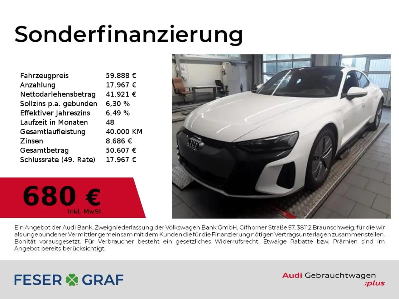 - Unter Raten verstehen wir den indikativen monatlichen Betrag bezogen auf das ausgeschriebene Finanzierungsbeispiel. Wir empfehlen dem Verbraucher, die Anzeige sorgfältig zu lesen. Der Verbraucher kann verschiedene Zahlungs- und/oder Finanzierungsformen bewerten, indem er den Werbetreibenden oder andere Finanzinstitute kontaktiert.