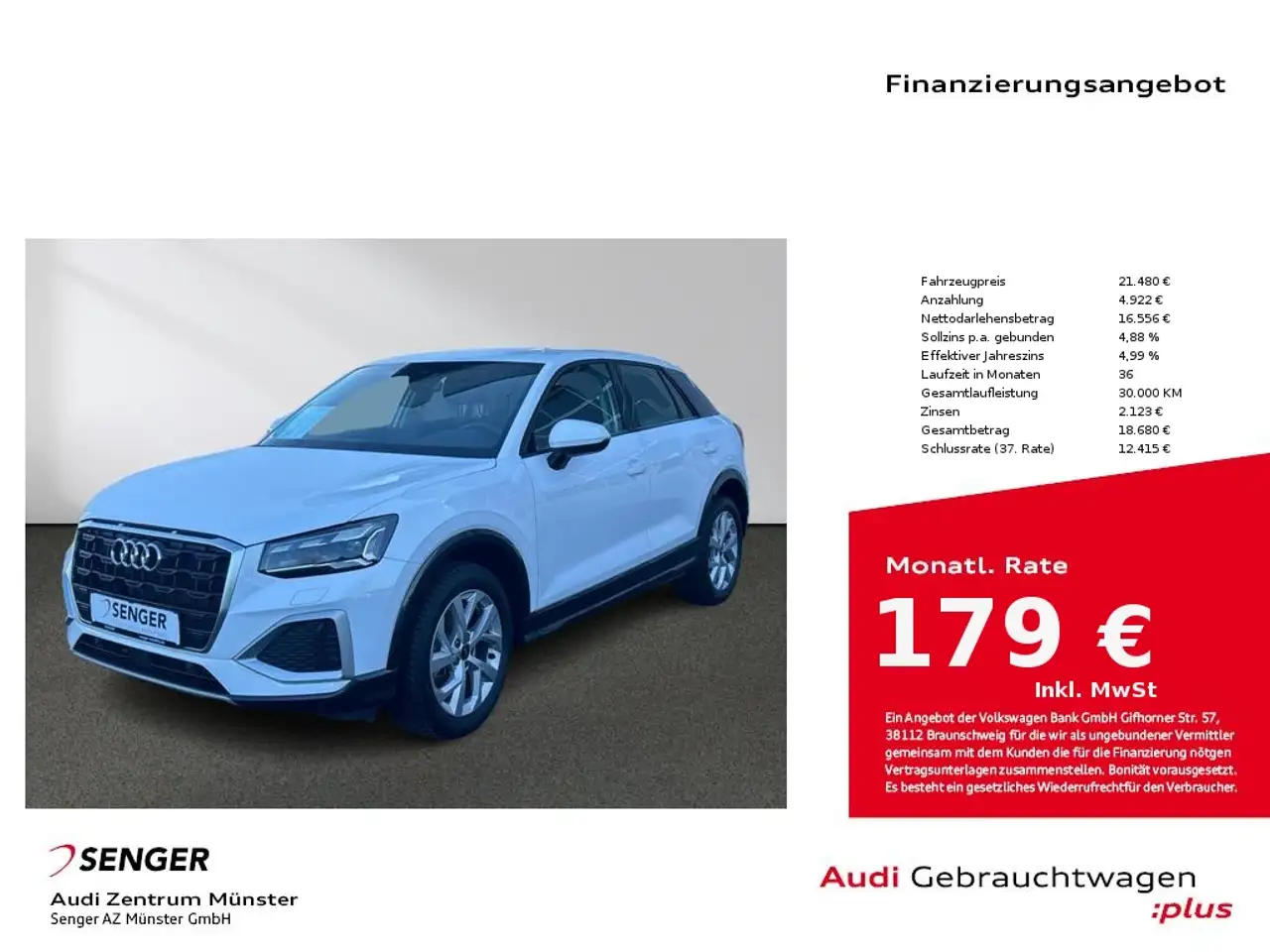 - Unter Raten verstehen wir den indikativen monatlichen Betrag bezogen auf das ausgeschriebene Finanzierungsbeispiel. Wir empfehlen dem Verbraucher, die Anzeige sorgfältig zu lesen. Der Verbraucher kann verschiedene Zahlungs- und/oder Finanzierungsformen bewerten, indem er den Werbetreibenden oder andere Finanzinstitute kontaktiert.