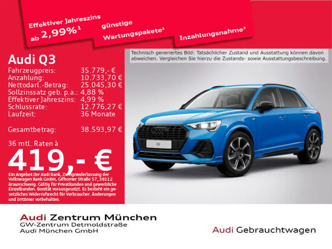 - Audi Q3 35 TFSI S Tronic S Line AHK/Virtual+/Navi+/PD