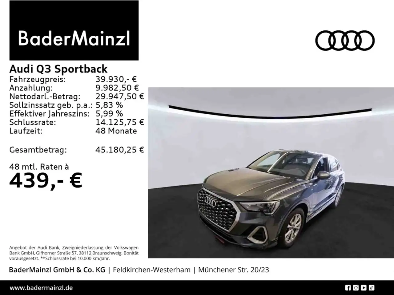 - Unter Raten verstehen wir den indikativen monatlichen Betrag bezogen auf das ausgeschriebene Finanzierungsbeispiel. Wir empfehlen dem Verbraucher, die Anzeige sorgfältig zu lesen. Der Verbraucher kann verschiedene Zahlungs- und/oder Finanzierungsformen bewerten, indem er den Werbetreibenden oder andere Finanzinstitute kontaktiert.