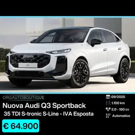 DRG AUTO BOUTIQUE SRL propone in vendita new Audi Q3 Sportback, motore 2.0 da 150 cv, equipaggiamento da vera top di gamma.