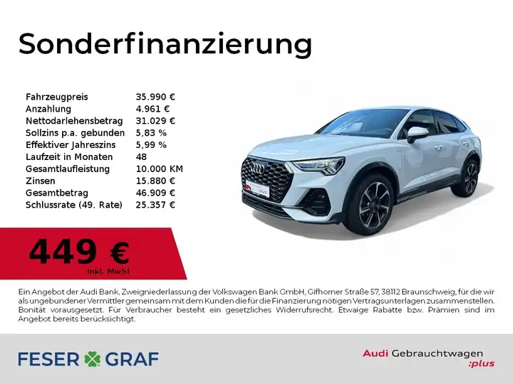 - Audi Q3 Sportback 35 TFSI S Line LED+/Kamera/Navi/VC+/GRA