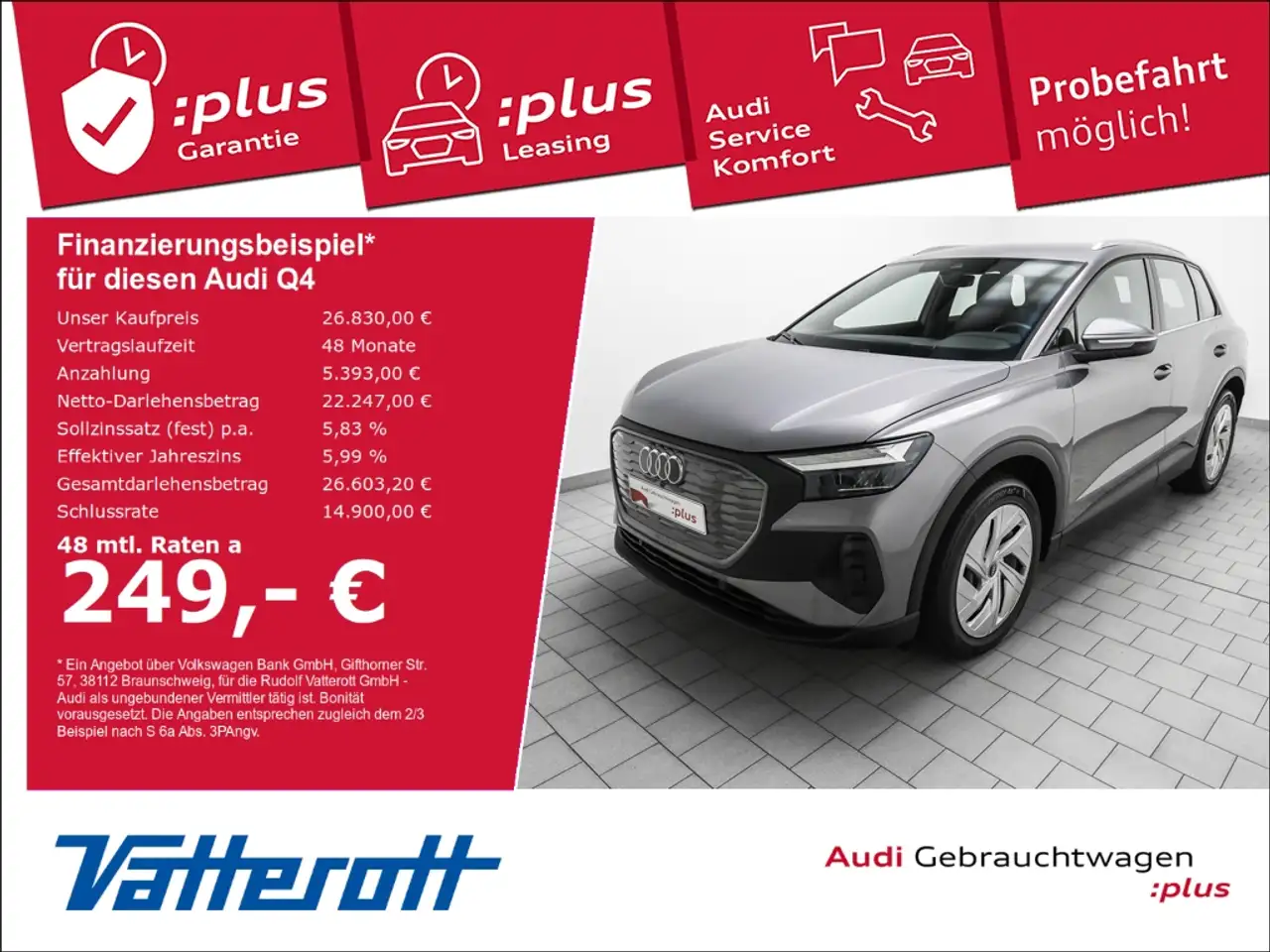 - Unter Raten verstehen wir den indikativen monatlichen Betrag bezogen auf das ausgeschriebene Finanzierungsbeispiel. Wir empfehlen dem Verbraucher, die Anzeige sorgfältig zu lesen. Der Verbraucher kann verschiedene Zahlungs- und/oder Finanzierungsformen bewerten, indem er den Werbetreibenden oder andere Finanzinstitute kontaktiert.