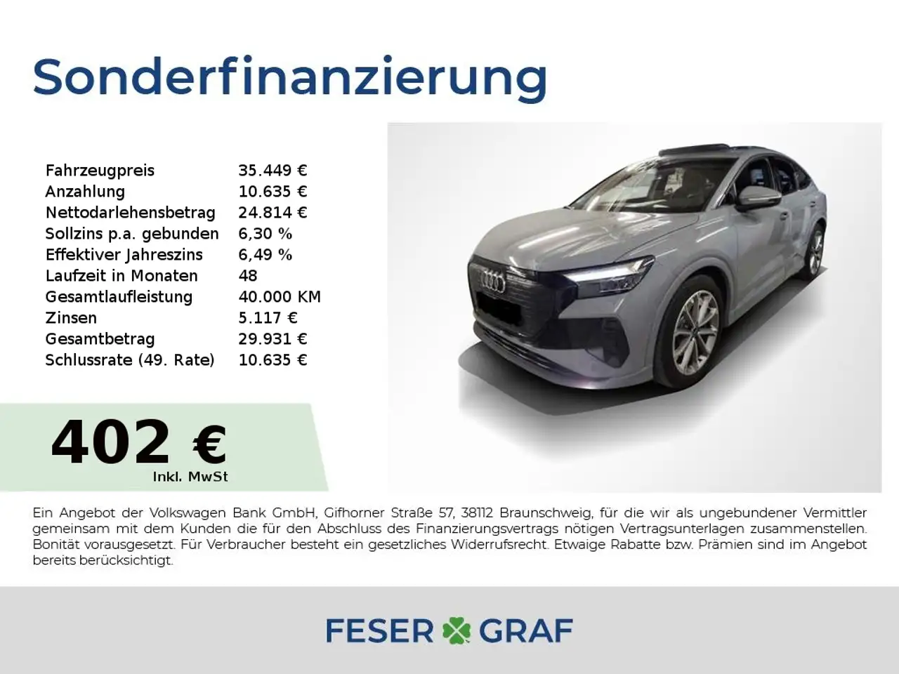 - Unter Raten verstehen wir den indikativen monatlichen Betrag bezogen auf das ausgeschriebene Finanzierungsbeispiel. Wir empfehlen dem Verbraucher, die Anzeige sorgfältig zu lesen. Der Verbraucher kann verschiedene Zahlungs- und/oder Finanzierungsformen bewerten, indem er den Werbetreibenden oder andere Finanzinstitute kontaktiert.