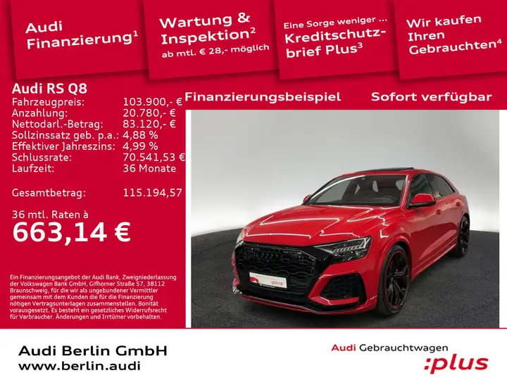 - Audi RS Q8 4.0 TFSI Qu.tiptr. STDHZG HUD PANO NACHTS