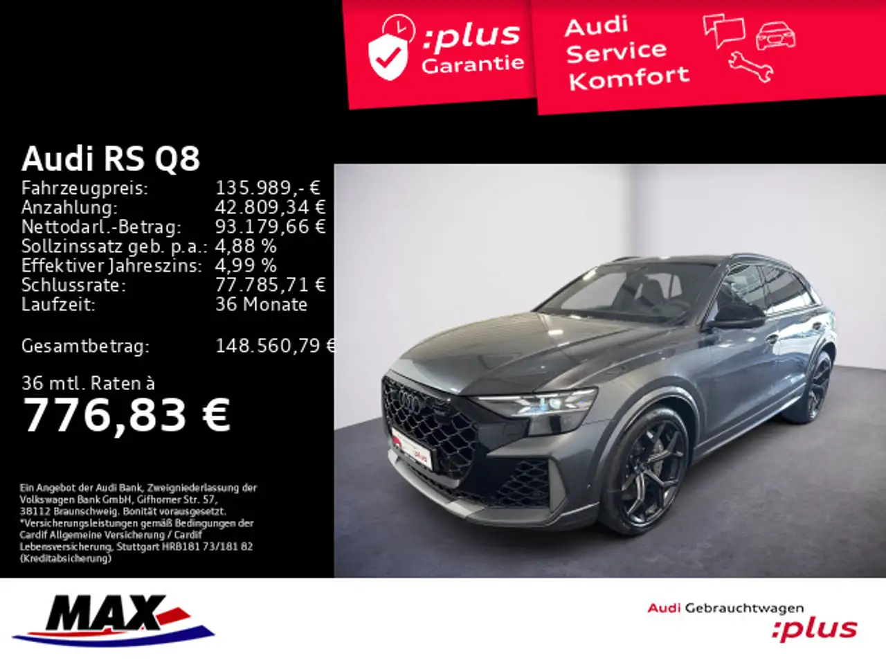 - Anbieterbank: Audi Bank - Zweigniederlassung der Volkswagen Bank GmbH / Gifhorner Str. 57 / 38112 Braunschweig