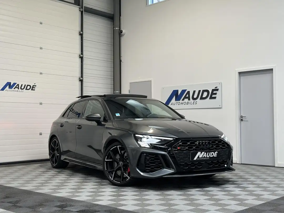AUDI RS3 Sportback 2.5 TFSI 400 ch Quattro Pack Performance / Ligne Akrapovic / Garantie Audi 04/2028 _________________ Véhicule visible uniquement sur rendez-vous, du lundi au vendredi de 9h30 à 18h00 et le samedi de 10h00 à 16h00 _________________ Ce véhicule bénéficie d'une garantie constructeur. Possibilité d'extension jusqu'à 48 mois avec notre partenaire leader de la garantie mécanique OPTEVEN (à partir de 33 euros / mois). Prix hors frais de formalités de 390 euros et carte grise en fonction du département. Reprise possible de votre ancien véhicule. _________________ Contactez Christopher de l'agence NAUDE AUTOMOBILES CHAPONOST pour ce véhicule. _________________Les options : Audi Phone Box, Audi pre sense basic, Audi smartphone interface, Augmentation de la vitesse de pointe à 280 km/h, Bang & Olufsen Premium Sound System avec son 3D, Caméra 360°, Extension de garantie 5 ans (2 ans + 3 ans supplémentaires) 100000 km, Jantes 19 pouces style à 5 branches en Y noir avec impression graphique, Pack noir plus, Peinture métallisée, Phares Audi Matrix LED avec clignotants dynamiques à l'avant et à l'arrière, Sellerie Cuir Nappa fin avec surpiqûres contrastés et embossé RS, Sièges avant chauffants, Suspension à amortissement piloté, Système de lecture des panneaux de signalisation par caméra, Toit panoramique, Accoudoir central coulissant en longueur, avec inclinaison réglable, 4 Pneus neufs, ABS (Système anti blocage des roues), Adaptive Cruise Control : régulation automatique de distance, Aide démarrage en côte, Aide freinage d'urgence, Allumage automatique des feux, Android Auto / Apple CarPlay sans fil, Anti-patinage, Audi drive select RS : RS individual / RS performance / RS torque rear, Bluetooth, Boîte automatique, Contrôle pression des pneus, Détecteur de fatigue, Détecteur de pluie, Double des clés, Drive select (Choix du mode de conduite), ESP (Système de correction de la trajectoire), Fermeture centralisée, Feux arrières LED, Fixation Isofix, Frein parking électrique, Front Assist (Système de freinage automatique d'urgence), GPS, Historique du véhicule, Ligne échappement Akrapovic installée par AUDI , MALUS PAYÉ / CARTE GRISE FRAIÇAISE, Ordinateur de bord, Phares/Feux antibrouillard avant et arrière, Prise(s) AUX/USB, Rétroviseur(s) Electrochrome, Radars de stationnement avant et arrière, Reconnaissance vocale, Sièges électriques à mémoire, Vitres arrière électriques, Vitres arrières et lunette surteintées, Vitres avant électriques, Appel d'urgence Audi connect, Applications décoratives intérieur en Carbone Atlas, Assistant de feux de route, Audi connect Appel d'urgence & Service, Audi connect navigation et divertissement plus, Audi Drive Select, Audi Hold Assist, Audi Park Assist, Audi pre sense front, Avertissement de sortie de voie, Banquette arrière variable, Combiné d'instruments numérique Digital Cockpit avec design spécifique RS supplémentaire, Interface Bluetooth, Limiteur de vitesse, MMI navigation plus avec MMI touch, MMI Radio Plus, Pack Eclairage d'ambiance multicolore, Phares à LED avec clignotants dynamiques à l'arrière, Rétroviseurs extérieurs réglables, dégivrants, rabattables électriquement avec fonction rabat automatique (côté passager avant, marche arrière enclenchée) et fonction jour/nuit automatique des deux côtés, Volant cuir Sport multifonctions plus 3 branches avec méplat et palettes de commande au volant