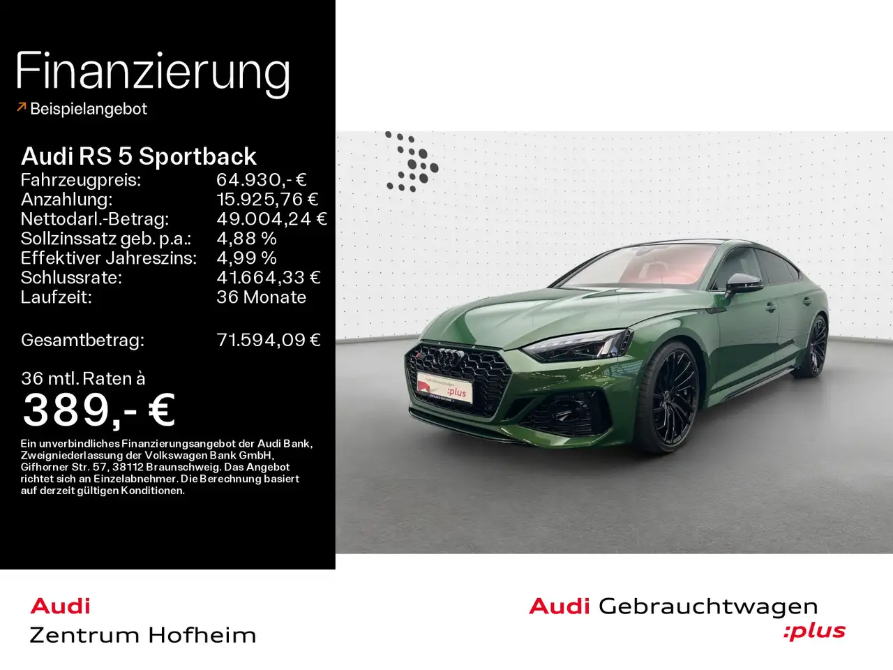 - Unter Raten verstehen wir den indikativen monatlichen Betrag bezogen auf das ausgeschriebene Finanzierungsbeispiel. Wir empfehlen dem Verbraucher, die Anzeige sorgfältig zu lesen. Der Verbraucher kann verschiedene Zahlungs- und/oder Finanzierungsformen bewerten, indem er den Werbetreibenden oder andere Finanzinstitute kontaktiert.