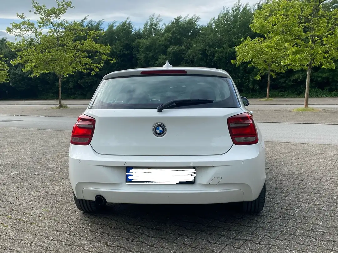Zum Verkauf steht ein gepflegter BMW 114i aus dritter Hand, Baujahr 2014, in klassischem Weiß mit umfangreicher Ausstattung und zuverlässiger Technik.