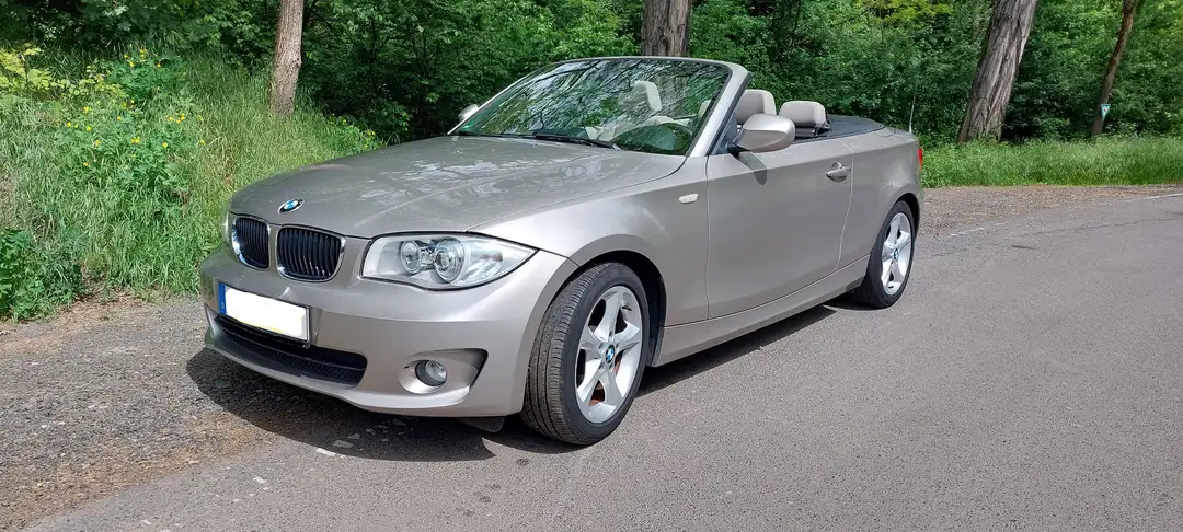 Gepflegter BMW 1er, E88 Cabrio, EZ 3/2012, TÜV 3/2027, regelmäßig gewartet, nur 116.600km, Motor läuft rund, Motorraum trocken, letzte Inspektion im Juli 2025 bei 112.000 km mit Ölwechsel und Wechsel der Bremsscheiben, Bremsbelägen bei allen Rädern, sowie der Bremsflüssigkeit, Navigation auf 2024 geupdatet, sparsamer Diesel EURO 5, Radio, CD, USB-Anschlüsse, Klimaautomatik, Freisprechanlage, Tempomat, Einparkhilfe Sensoren hinten, Ledersitzbezüge weiß, elektrische Sitzheizung für beide Vordersitze, Verdeck elektrisch und voll funktionsfähig, insgesamt 3 Besitzer mit mir. Vorbesitzer hatte vor ca. 5Jahren einen leichten Auffahrunfall auf einem Parkplatz, Schaden wurde in Werkstatt professionell behoben. Aktuell keine Beulen oder größere Kratzer, Bilder sind aktuell. Der Wagen ist noch angemeldet und kann bei Interesse gerne Probe gefahren werden.