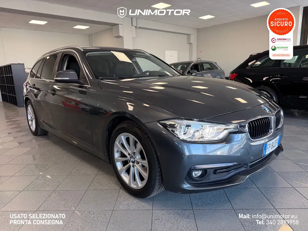 BMW F31 318d Touring Sport 150cv Automatica ufficiale Italiana del 03/2018, con 183.561 km, colorazione Grigio scuro metallizzato e interni in tessuto nero, in ottime condizioni generali.