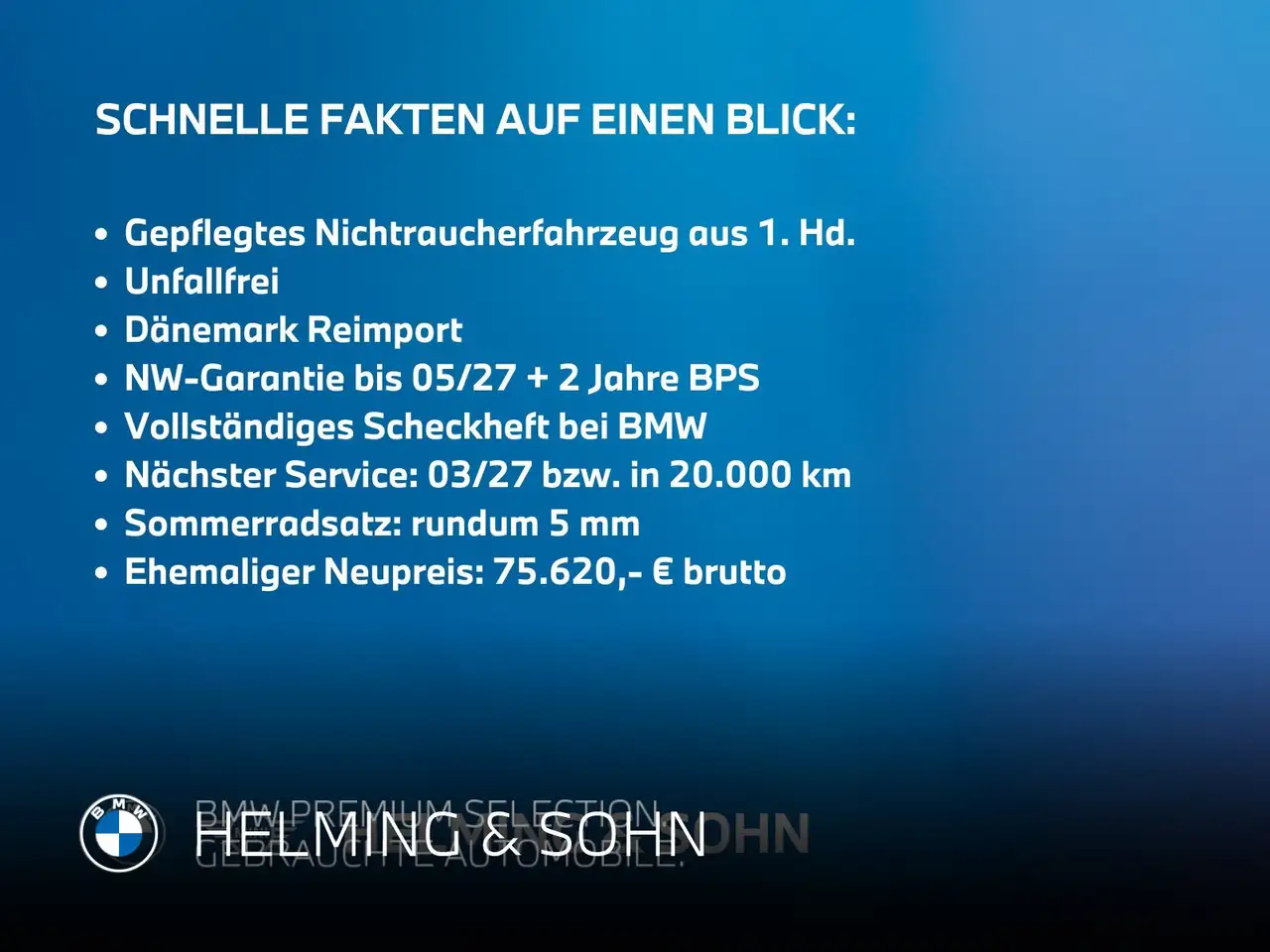 - Werkstattgeprüfte Fahrzeuge inkl. 1 Jahr Garantie (BMW Premium Selection Fahrzeuge inkl. 2 Jahre Garantie)