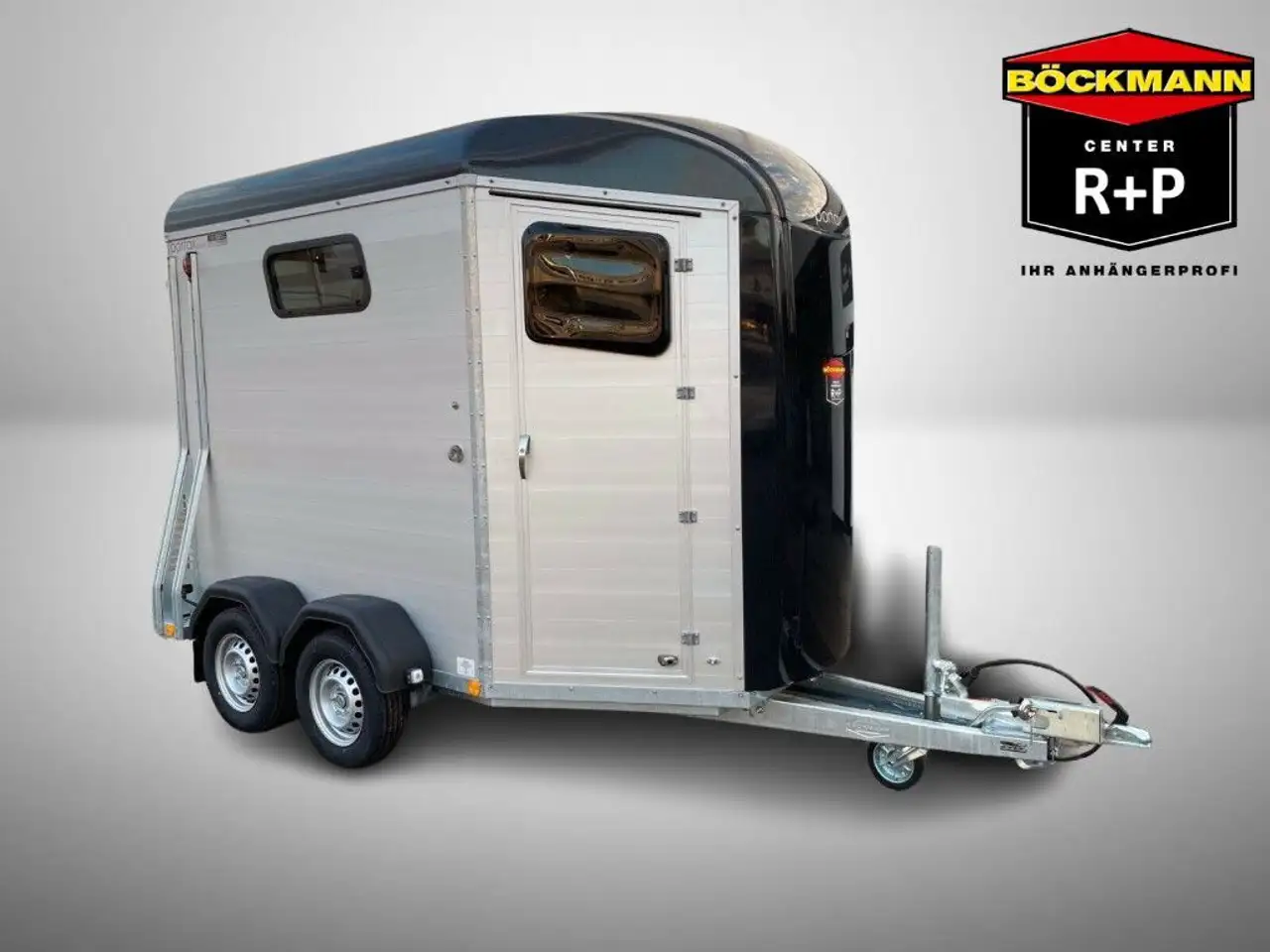 Aufbau: 2 Seitenstreben hinten pro Seite, 1 Schiebefenster je Seite, 2 Austellfenster je Seite, Aluminium-Boden, Bordwände Alu-eloxiert 2100 mm hoch, hohe Einstiegstüre rechts zum Pferderaum mit Fenster, Einzelradkotflügel, Kunststoff (schwarz)Farbe Polyesterbug: Anthrazit-metallic, Farbe Polyesterhaube: Anthrazit-metallic, Planenlift
