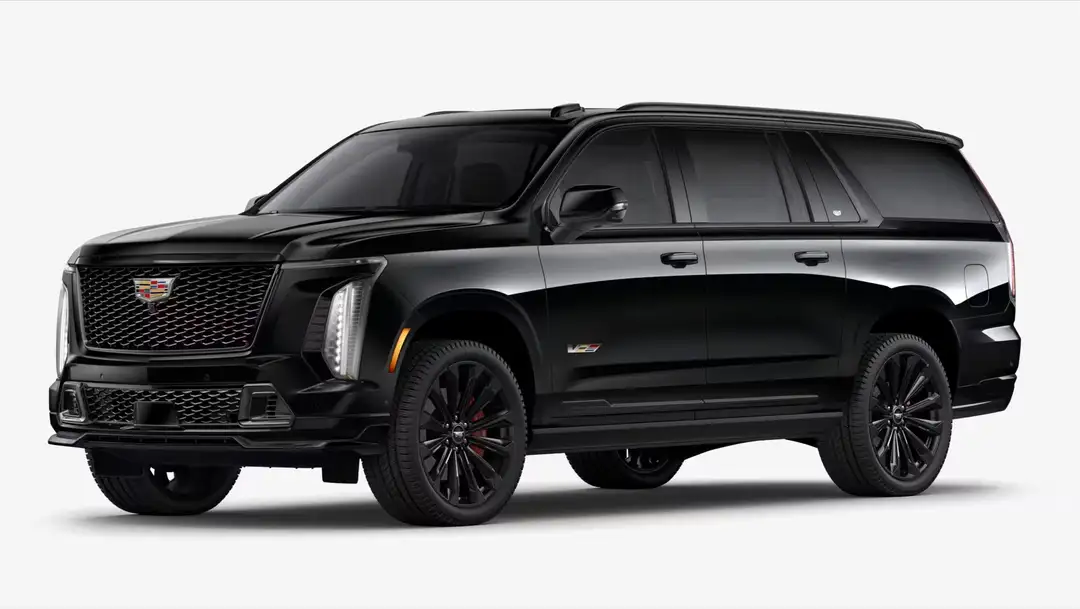 S1G53848165 Black Raven 2025 Cadillac Escalade ESV V-Series +APD DOORS, POWER ASSIST OPEN CLOSE +LT4 6.2L SUPERCHARGED V8, 682 HP AND 885 NM +IVE INFOTAINMENT EXPERIENCE WITH 55 INCH DIAGONAL HD CURVED FRONT DISPLAY +R5D WHEELS, 24 INCH SPLIT 6 SPOKE ALLOY WITH SATIN GRAPHITE AND LASER ETCHED V LOGO +S3I PUDDLE LAMPS, CADILLAC CREST +ST1 TOURING PACKAGE +UAR AUGMENTED REALITY +UQH AKG STUDIO REFERENCE 36 SPEAKER SYSTEM, INCLUDES 3D SURROUND +UV6 HEAD UP DISPLAY +UW9 REAR SEAT ENTERTAINMENT SYSTEM