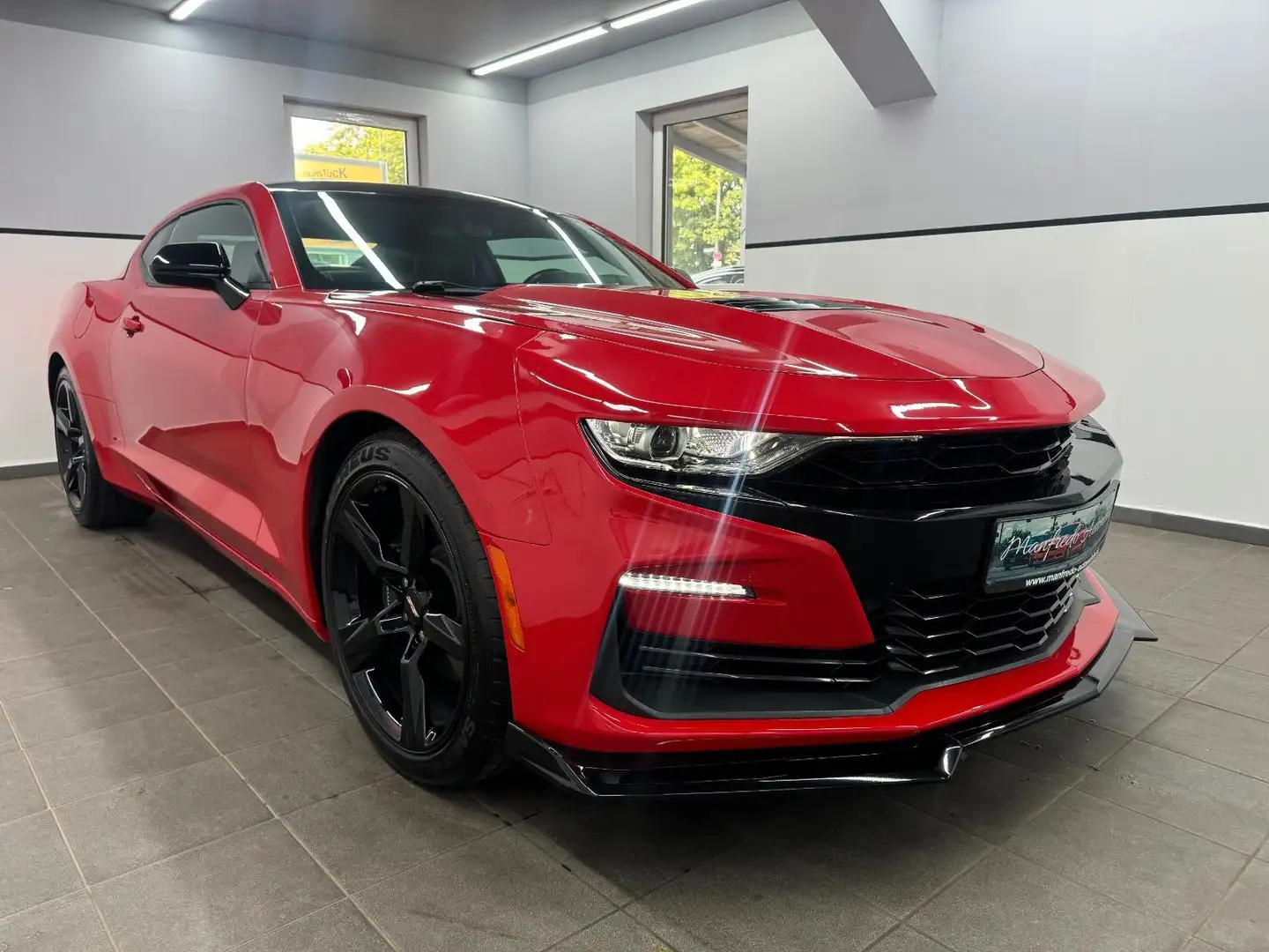 Dieser Chevrolet Camaro aus 2021 vereint klassisches Muscle-Car-Feeling mit zeitgemäßer Technologie. Der kraftvolle 6,2-Liter V8-Motor mit beeindruckenden 461 PS beschleunigt diesen Hecktriebler souverän. Die rote Metallic-Lackierung mit schwarzem Lederinterieur unterstreicht den sportlichen Charakter dieses Coupés.
