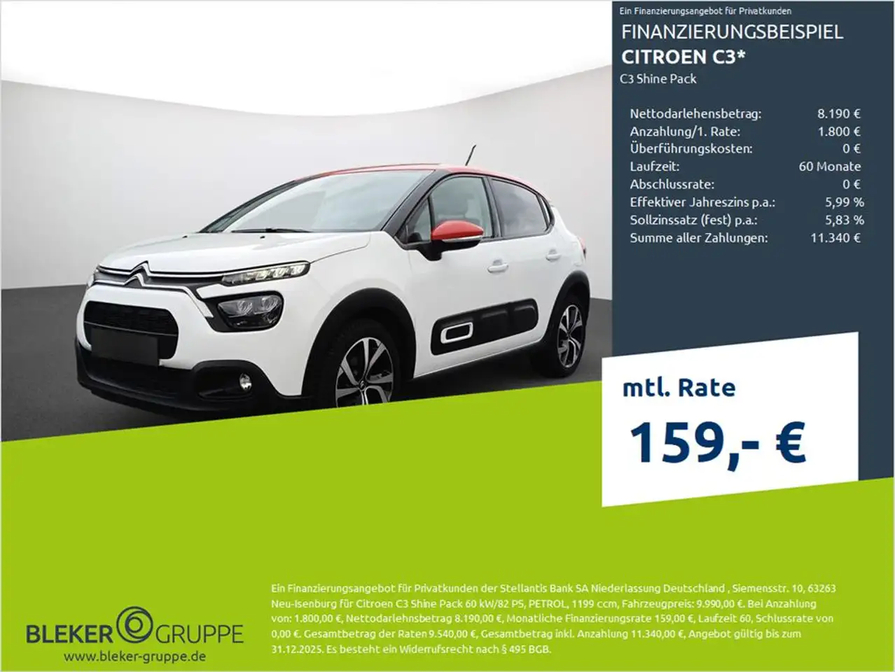 3. Unter Raten verstehen wir den indikativen monatlichen Betrag bezogen auf das ausgeschriebene Finanzierungsbeispiel. Wir empfehlen dem Verbraucher, die Anzeige sorgfältig zu lesen. Der Verbraucher kann verschiedene Zahlungs- und/oder Finanzierungsformen bewerten, indem er den Werbetreibenden oder andere Finanzinstitute kontaktiert.