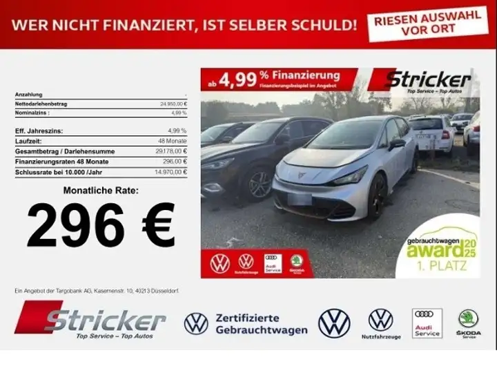 - CUPRA Born 170/58 296,-ohne Anzahlung Navi Kamera Wärmepumpe