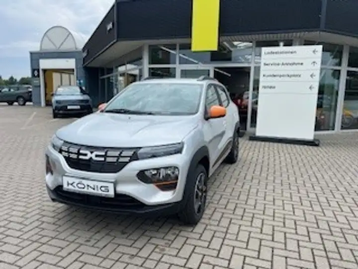 CCS-Ladeanschluss, facba1, Optionspaket Expression inkl. KM Westeuropa, Look-Paket Orange, Zentralverriegelung mit Funk-Fernbedienung, LED-Tagfahrlicht, ESP (Electronisches Stabilitätsprogramm) und Berganfahrhilfe, Eco-Mode zur Reichweitenoptimierung, Dacia Plug & Radio, Standardlackierung ohne Aufpreis, Lichtautomatik, Elektrische Fensterheber vorne, Elektrische Fensterheber hinten, Bordcomputer mit 35-Zoll-TFT-Display, Notbremsassistent, E-Call: Automatischer Notruf, Indirektes Reifendruckkontrollsystem, Ladekabel Typ2/Typ2 (Mode 3), Ladekabel Schuko/Typ2 (Mode 2 10 A), Geschwindigkeitsbegrenzer, Sitzpolster Essential mit Seitenwangen in Lederoptik dunkel, ABS (Anti-Blockier-System), Seitenairbags vorne und Windowbags für vorne und hinten, Manuelle Klimaanlage mit Pollenfilter, Außenspiegel elektrisch einstellbar, 14'' Stahlräder, Frontairbags für Fahrer und Beifahrer (Beifahrerairbag deakt, ISOFIX-Kindersitzbefestigung auf den hinteren Außenplätzen, Rücksitzlehne umklappbar (1/1), Automatische Türverriegelung nach dem Anfahren, Mobilitäts-Set (12-V-Kompressor und Reifendichtmittel)