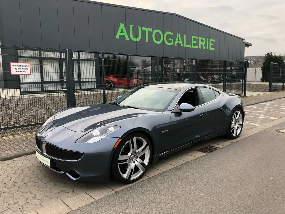Fisker Karma Ecosport in Neuwagenzustand, dunkelgraumetallic perleffect (Deep ocean) mit schwarzer Lederausstatttung und Alcantara abgesetzt. Vollausstattung ab Werk.