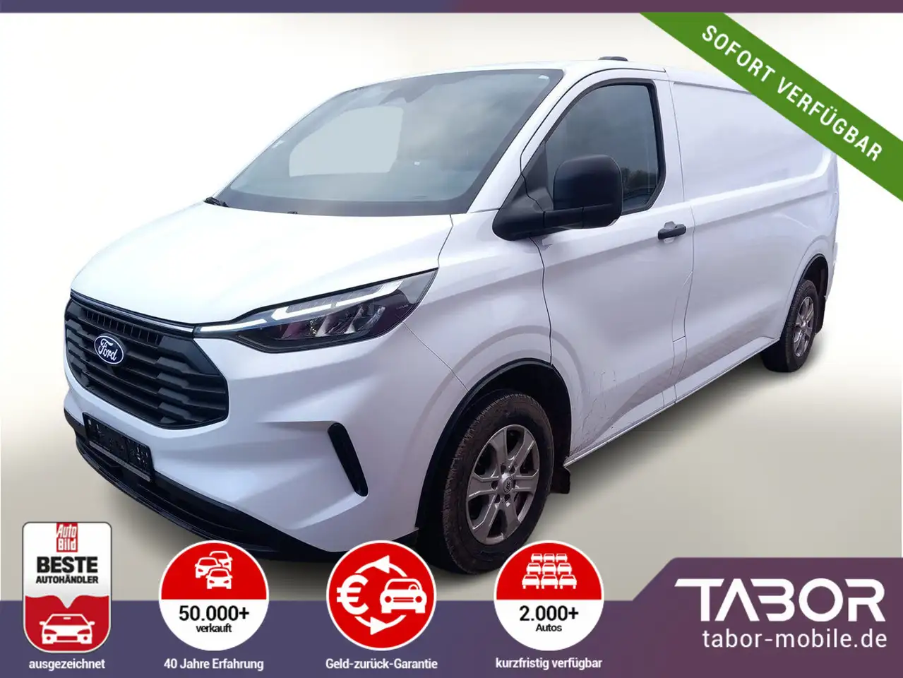 Scheinwerfer LED (Blinkleuchten LED / Fahrassistenz-System: Fernlichtassistent (Scheinwerfer mit Abblendautomatik)), Bodenbelag: Vinyl im Lade-/Fahrgastraum, Laderaumleuchte LED, extra hell, AdBluetank 20L, Beifahrerdoppelsitz, Einparkhilfe vorn und hinten, Fahrersitz (4-fach verstellbar), Geschwindigkeitsregelanlage (Tempomat), Kraftstofftank vergrößert (70L), Lautsprecher (4), Lendenwirbelstütze vorn links, LM-Felgen 16 Zoll, Navigation in Verbindung mit dem Smartphone (über Apple CarPlay / Android Auto /...), Radzierblenden, Reifen 215/65 R16, Rückfahrkamera, Sitzheizung vorne (äußere Sitze), Smartphone Schnittstelle (Apple CarPlay & Android Auto), Verkleidung im Lade-/FG-Raum: halbhoch, Technologie-Paket 2 (Audiosystem: Radioempfang Digital (DAB / DAB+) mit 13" Multifunktionsdisplay und SYNC 4 / Fahrassistenz-System: Falschfahrer-Warnfunktion / Fahrassistenz-System: Spurwechsel-Warnsystem / Fahrassistenz-System: Pre-Collision-System / Fahrassistenz-System: Verkehrsschildassistent / Fahrassistenz-System: Müdigkeits-Warner / Fahrassistenz-System: Spurhalteassistent), Feststellbremse elektrisch, Ford SYNC 4 mit AppLink und Touchscreen, Haltegriff A-Säule, Handschuhfach abschließbar, Heckflügeltüren, Karosserie/Aufbau: Kasten Standard, Laderaumtrennwand Metall, LKW-Zulassung, Motor 2,0 Ltr. - 110 kW EcoBlue KAT, Power KeyFree-Startfunktion, Radstand 3500 mm, Schiebetür Lade-/Fahrgastraum rechts, Stahlfelgen 6,5x16, Trend, Zul. Gesamtgewicht 3,20 t, USB-Schnittstelle, Anti-Blockier-System (ABS), Antriebsart: Frontantrieb, Elektron. Stabilitäts-Programm (ESP), Traktionskontrolle, Getriebe 6-Gang, Klimaautomatik, Airbag Beifahrerseite, Fensterheber elektrisch, Laderaumtrennwand ohne Fenster, Zentralverriegelung mit Fernbedienung, Frontscheibe heizbar, Fahrassistenz-System: Berganfahr-Assistent, Fahrassistenz-System: Notrufsystem, Außenspiegel elektr. verstell- und heizbar, Scheibenwischer mit Regensensor, Reifendruck-Kontrollsystem, Start/Stop-Anlage