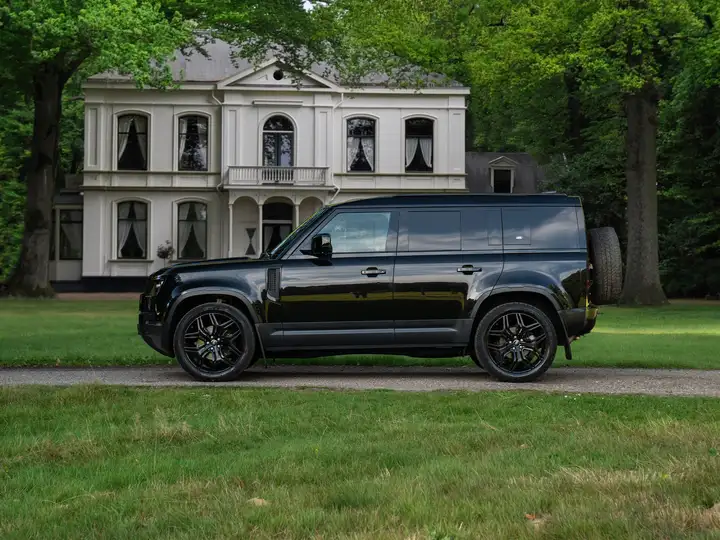 Zaken gaan altijd voor met deze fraaie Land Rover Defender D240 HSE op grijs kenteken. Naast business is de Defender 110 met 240 pk sterke 2,0 liter bi-turbodiesel ook heel interessant op ’t gebied van pleasure. Om te beginnen is de 4x4 aandrijflijn van de meest robuuste off-road killer onder de luxe SUV’s super smooth. Maar ook het uitrustingsniveau is next level: LED Matrix-koplampen, stoelverwarming, stoelventilatie, zijdezachte luchtvering, een panoramadak, 3D Surround View Camera en Meridian Surround Sound audio met 600 Watt vermogen + Apple CarPlay maken van dit all-terrain wonder een heerlijk comfortabele kilometervreter. De elektrisch wegklapbare trekhaak vat het DNA van de Defender 110 2.0 D240 HSE perfect samen: functioneel als ’t moet, luxueus en strak omdat het kan. Vanwege de grijs kenteken configuratie schittert een tweede of derde zitrij door afwezigheid. Maar de twee zetels die overblijven zijn wel extra mooi afgewerkt met hoogwaardig, geperforeerd Windsor leder in de kleur zwart. Ook het lederen dashboard, stuurwiel, alsmede de middenarmsteun kleurt zwart. Daartegenover staat een schitterende Light Oyster dakhemel die voor een prettig contrast zorgt. Details zoals deze maken dat de Santorini Black Brit een werkpaard pur sang is die altijd in stijl voor de dag kan komen, ongeacht de gelegenheid. En natuurlijk helpt de modelhistorie ook mee; de Defender is immers pure cult. En van oudsher de absolute off-road koning.