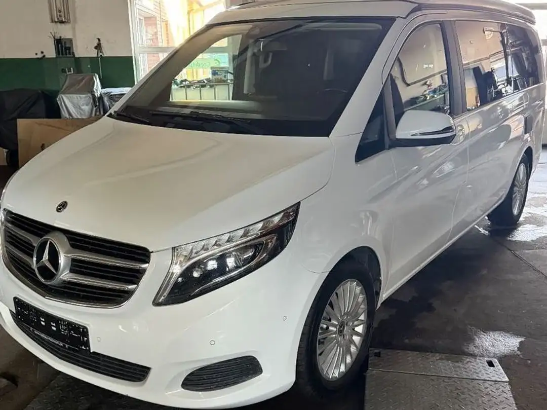 Ablagenetz an Vordersitzlehne links, Ablagenetz an Vordersitzlehne rechts, Airbag Beifahrerseite, Airbag Fahrerseite, Anhängerkupplung: Elektrik für Anhängersteckdose, Audiosystem Audio 20 mit Touchpad, Auflastung auf 3,1 t, Ausführung: Marco Polo, Außenspiegel asphärisch, beide, Außenspiegel elektr. verstell- und heizbar, beide, Außenspiegel mit integrierter Blinkleuchte, Außentemperaturanzeige, BlueEfficiency-Paket, Bodenbelag: Fahrgastraum TPO in Yachtbodenoptik hell, Bodenbelag: Teppich im Fahrerraum, Bremsassistent, Dachbett, Design- und Ausstattungslinie Edition, Edition, Einschaltautomatik für Fahrlicht, Einstiegsgriff hinten, Einstiegsleisten mit Schriftzug Mercedes-Benz (beleuchtet), Einstiegsleuchten, Fahrassistenz-System: Anfahr-Assistent (Berganfahr-Assistent), Fahrassistenz-System: Attention-Assist (Müdigkeitserkennungs-Sensor), Fahrassistenz-System: Seitenwind-Assistent, Fenster für hintere Türen / Heckklappe mit Wisch-/Waschanlage, Fenster im Lade-/FG-Raum: - ausstellbar hinten rechts, links feststehend, Fenster im Lade-/FG-Raum: - feststehend, vorn rechts, Fenster im Lade-/FG-Raum: - schiebbar, vorn links, Feststellbremse elektrisch, Feststeller Schiebetür (Aktiv), Frontscheibe mit Scheibenantenne, Gurtstraffer, Handschuhfach abschließbar, Heckscheibe aufstellbar, Heckscheibe heizbar, Intelligent Light System LED, Karosserie/Aufbau: lang, Karosserie/Aufbau: Motor Caravan, Karosserievariante: Aufstelldach, Kindersicherung, Komfort-Kopfstützen Fahrgastraum, Komfortbeleuchtung im Fahrgast-/Laderaum, Kommunikationsmodul Mercedes me connect (Internetbasierende Dienste), Kopf-Airbag-System (Windowbag), Kopf-Schulter-Airbag (Thoraxbag) Fahrer-/Beifahrerseite, Kraftstofftank: vergrößert, Lenkrad (Lenksäule mech. verstellbar), Lenkrad mit Multifunktion inkl. Reiserechner, LM-Felgen, Marco Polo, Mercedes-Benz Notrufsystem, Metallic-Lackierung, Mittelkonsole vorn mit Rollo / Ablage, Motor 2,1 Ltr. - 120 kW CDI KAT, Navigationsmodul Garmin MAP Pilot, Nebelschlussleuchte, Park-Paket, Radstand 3200 mm, Reifendruck-Kontrollsystem, Schadstoffarm nach Abgasnorm Euro 6, Scheibenwischer mit Regensensor, Schiebetür Lade-/Fahrgastraum rechts, Sicherheitsgurt-System mit Warnanlage (Fahrer-/Beifahrerseite), Sitzausstattung: Komfort-Kopfstütze, Beifahrersitz, Sitzausstattung: Komfort-Kopfstütze, Fahrersitz, Sitzausstattung: Schnellverriegelung für Sitzschienen-System, Sitzbezug / Polsterung: Stoff, Sitze im Fahrerhaus: Beifahrersitz Komfort, drehbar, 2 Armlehnen, Sitze im Fahrerhaus: Beifahrersitz mit Lendenwirbelstütze, Sitze im Fahrerhaus: Fahrersitz heizbar, Sitze im Fahrerhaus: Fahrersitz Komfort, drehbar, 2 Armlehnen, Sitze im Fahrerhaus: Fahrersitz mit Lendenwirbelstütze, Sonnenblenden mit Spiegel (beleuchtet), Spiegel-Paket, Sport-Fahrwerk, Sport-Paket Exterieur, Spur-Paket, Steckdose (12V-Anschluß) im Lade-/Fahrgastraum, Steckdosen (12V-Anschluß) im Lade-/Fahrgastraum, 2-fach, Stoßfänger / Stoßf.-Leiste seitlich + Griff an Heckklappe lackiert, Verglasung hinten abgedunkelt / Schwarzglas, Vlies-Batterie 92 Ah, Warmluftkanal zum Lade-/Fahrgastraum, Wartungsintervall-Anzeige Assyst, Wärmeschutzverglasung, Zuheizer, Zweiwege Lautsprecher vorn und hinten