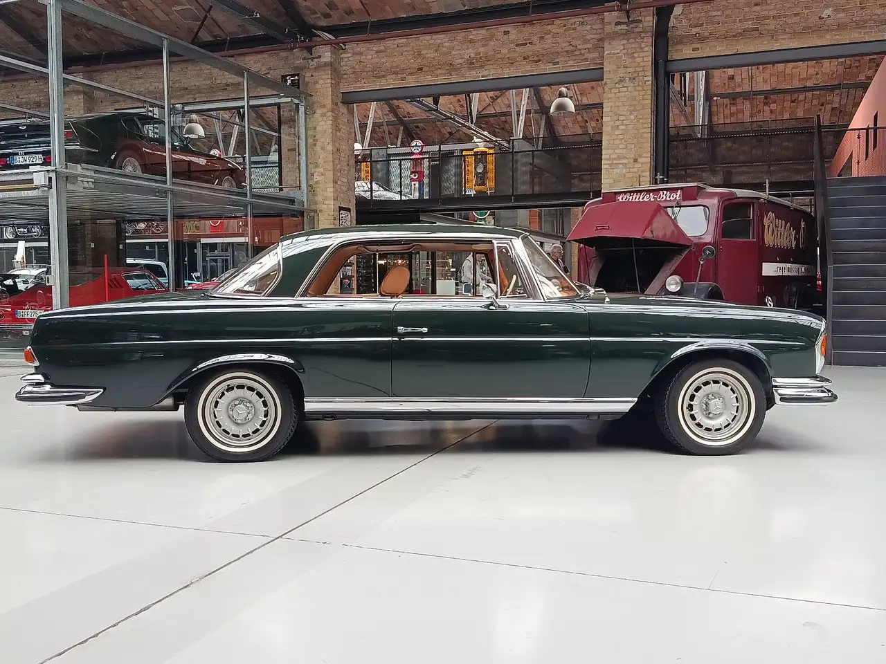 Besonders der traumhafte, originale Innenraum mit dem einzigartigen Leder „Bambus“, womit auch das Armaturenbrett und die Seitenverkleidungen handgefertigt bezogen sind, ergibt mit dem wundeschönen Wurzelholz eines der stilvollsten Interieurs in der langen Geschichte der Mercedes-Coupés.