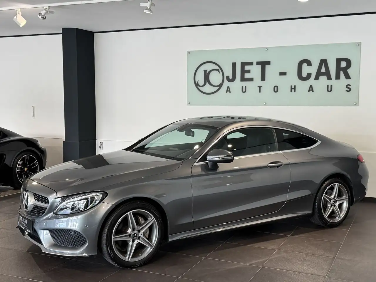 Mercedes Benz C 180 Coupe AMG Line aus 2. Hand in Selenitgrau Metallic.