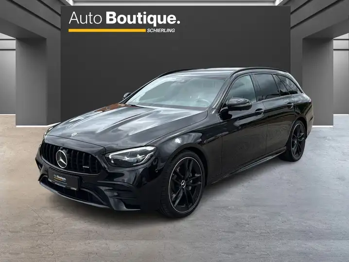 Der Mercedes-Benz E 53 AMG 4MATIC+ T-Modell in elegantem Schwarz vereint sportliche Performance mit erstklassigem Komfort und Alltagstauglichkeit. Ausgestattet mit einem 3,0-Liter-Reihensechszylinder und EQ-Boost, leistet der AMG 435 PS und beschleunigt in nur 4,5 Sekunden von 0 auf 100 km/h. Das intelligente Allradsystem 4MATIC+ sorgt für maximale Traktion in jeder Fahrsituation. Mit markantem AMG-Styling, edlem Interieur und großzügigem Laderaum ist dieses T-Modell die perfekte Symbiose aus Dynamik, Luxus und Funktionalität.