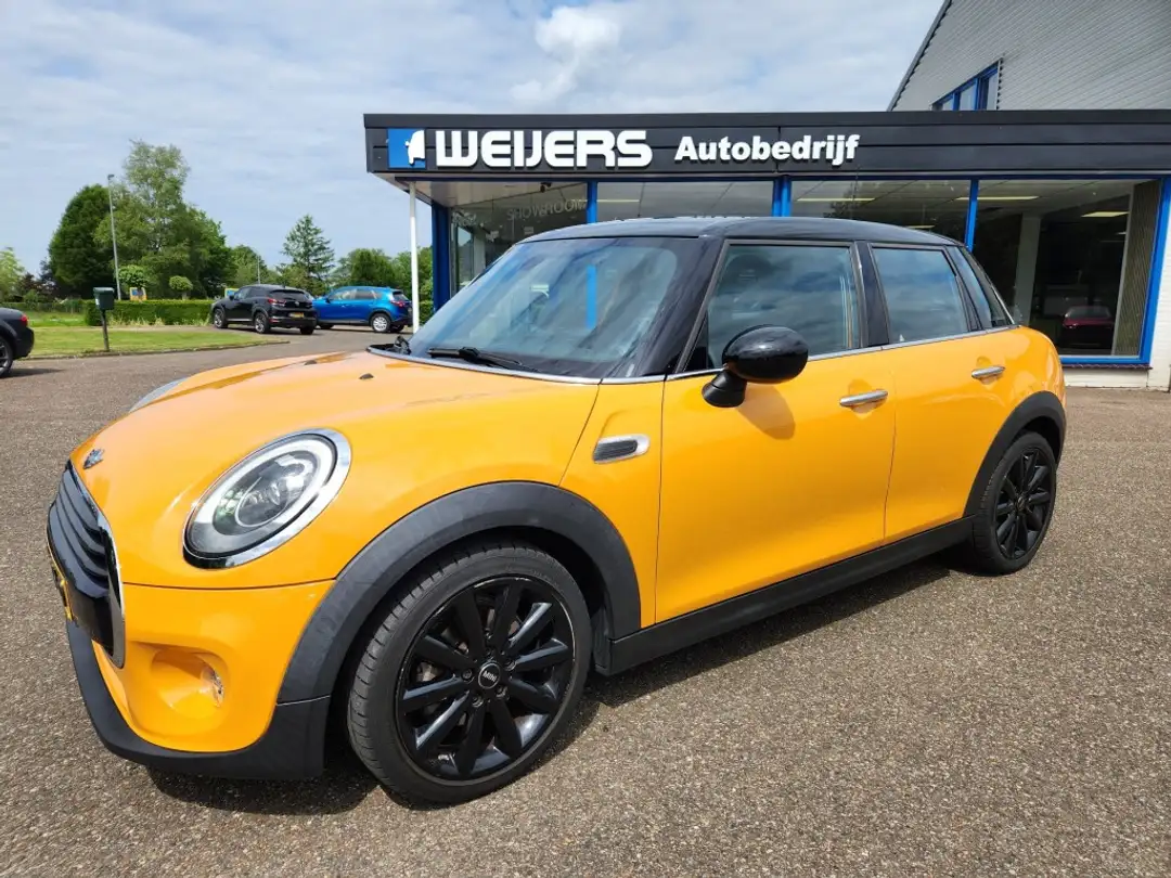 Schitterende Mini Cooper in spectaculair oranje met zwart dak en zwarte velgen! Origineel Nederlandse auto met slechts 72.305 km! Altijd netjes dealeronderhouden en compleet uitgerust! Voorzien van gescheiden klimaatcontrole, navigatie, parkeersensoren, USB, Bluetooth, cruise control en nog veel meer. Kom snel langs en ervaar deze Mini zelf! Deze auto is te koop voor de advertentieprijs, bij deze prijs berekenen wij geen extra kosten. Wenst u dat deze auto geleverd wordt met aanvullende BOVAG-garantie, nieuwe APK en afleverbeurt dan berekenen wij afleverkosten van 750,- Euro. Onze prijzen op ViaBOVAG.nl zijn all-in prijzen. Inruil van elk merk is welkom. Voor meer informatie en de beschikbaarheid kun u ons bereiken via tel: 055-3231494. Voor ons actuele occasionaanbod kijkt u op onze website. Autobedrijf Weijers is al sinds 1961 op de huidige locatie gevestigd.