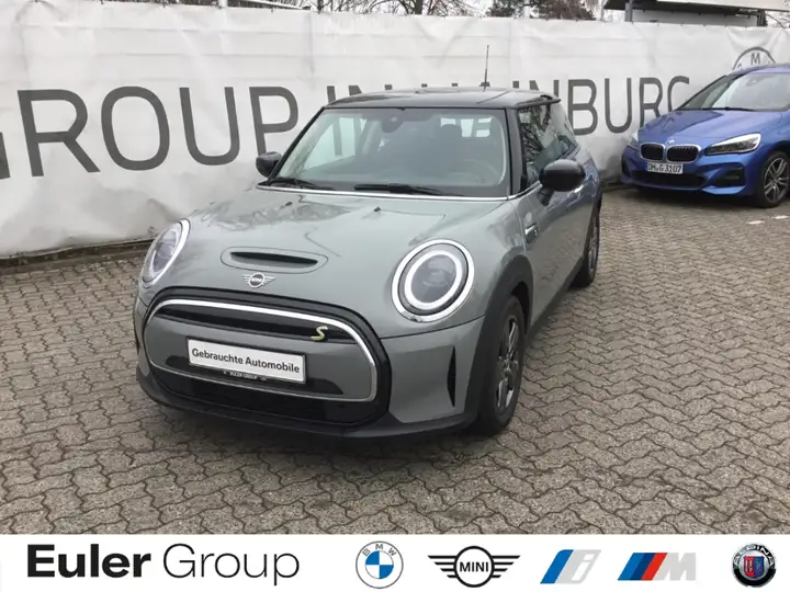 - Weiteres: Ambiente-Beleuchtung, Dachspoiler, Lenksäule (Lenkrad) mechan. verstellbar, ISOFIX-Aufnahmen für Kindersitz, Reifendruck-Kontrollsystem, Sportsitze vorn, BORDCOMPUTER, Sitzbezug / Polsterung: Stoff Double Stripe, Geschwindigkeits-Regelanlage (Tempomat) mit Bremsfunktion (DCC), HV-Batterie 32,6 kWh, LM-Felgen, Navigationssystem, Sonderlackierung Moonwalk Grey Metallic, Scheinwerfer LED, Airbag Fahrer-/Beifahrerseite, Anti-Blockier-System (ABS), Fensterheber elektrisch vorn, Seitenairbag vorn, Kopf-Airbag-System hinten, Kopf-Airbag-System vorn, Wegfahrsperre, USB-Schnittstelle, Rücksitzlehne geteilt/klappbar, Außenspiegel elektr. verstellbar, Licht- und Regensensor, Freisprecheinrichtung Bluetooth mit USB-/Audio-Schnittstelle, Service-System: Intelligenter Notruf inkl. TeleServices, ARMAUFLAGE VORN, Ablage-Paket, Akustischer Fußgängerschutz, Audio-Navigationssystem, Außenspiegel elektr. anklappbar, Außenspiegel rechts mit Bordsteinautomatik, Außenspiegel-Paket, Ausstattungs-Paket: Connected Navigation, Autom. Begleitfunktion der Beleuchtung (Follow me home), Bremsassistent, DAB-Tuner (Radioempfang digital), Dachhimmel Satellite Grey, Dynamische Bremsleuchte, Elektromotor 100 kW (cont. 57 kW), Elektron. Bremskraftverteilung, Essential Trim, Fahrassistenz-Paket, Getränkehalter vorn und hinten, Heckspoiler, Innenspiegel mit Abblendautomatik, Instrumentenanzeige multifunktional, Instrumententafel - unterhalb Piano Black, Interieur Piano Black, Klimaautomatik 2-Zonen mit autom. Umluft-Control, Komfort-Paket, MINI Connected, MINI Driving Modes, Personalisierungssystem, Scheibenwaschdüsen beheizt, Service-System: ConnectedDrive Services, Service-System: Real Time Traffic Information (RTTI), Servolenkung Servotronic, Sitzheizung vorn, Sitzhöhenverstellung, Sport/Lederlenkrad, ZV mit Diebstahlsicherung und Crashsensor