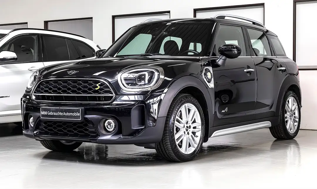 Modell MINI COOPER SE COUNTRAYMAN All4 Hybrid 165 kW, Colour Line Carbon Black, Interieur Oberfläche Piano Black, Dachhimmel anthrazit, Classic Trim, MINI Excitement-Paket, Pack Premium, Allradantrieb ALL4, LED-Scheinwerfer mit erweiterten Umfänge, Lichtpaket, LED Nebelscheinwerfer, Automatic Getriebe Steptronic, Komfortzugang, Performance Control, Sport-Lederlenkrad + Multifunktion, LM Rad Pair Spoke 18 ", Teil-Leder-Sportsitze, Armlehne vorne, Mittelarmlehne im Fond, Ablagenpaket, Sitzheizung, Klimaautomatik 2-Zonen mit autom. Umluft-Control, Standklimatisierung (kühlt, lüftet oder heizt per App MyMINI oder Voreinstellung), Sonnenschutzverglasung, Color-Line, MINI Driving Modes, Performance Control, Driving Assistant, Geschwindigkeitsregelung mit Bremsfunktion, Frontkollisionswarnung, Akustischer Fussgängerschutz, MINI Connected XL, Connected Navigation, Multifunktionales Instrumentendisplay, Real-Time Traffic Information, Apple Carplay, Smartphone-Integration, Telefonie mit Wireless Charging, DAB Tuner (Radioempfang digital), Sichtpaket, Aussensp.schwarz/Dach Wagenfarbe, Aussenspiegel Anklappfunktion, Außen-/ Innenspiegel mit Abblendautomatik, Rückfahrkamera, Park-Distance- Control (PDC) hinten, eDrive Services, Sicht- Paket, Dachreling, Automatische Heckklappenbetätigung, Abgasnorm EU6 RDE.