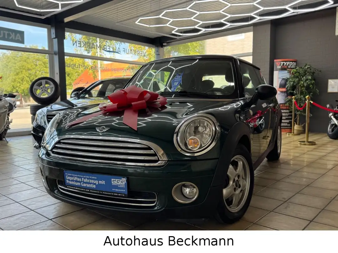 Dieser gepflegte MINI ONE aus dem Jahr 2008 präsentiert sich in attraktivem Metallic-Grün mit schwarzem Stoffinterieur.