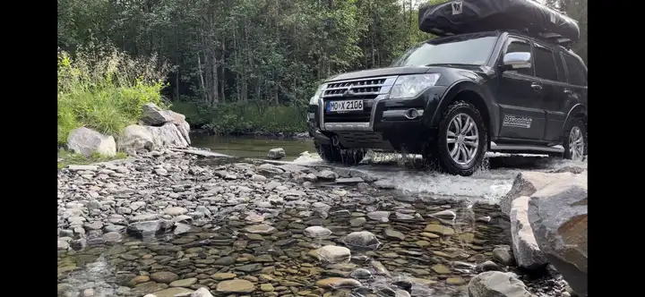 Da wir mit Kindern unterwegs waren und nie Hardcore Offroad gefahren sind hat der Pajero noch das Original Fahrwerk und lediglich einen 5mm unterfahrschutz von Offroadmanni bekommen.