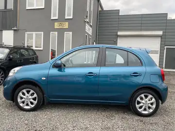 Airbag Beifahrerseite abschaltbar, Airbag Fahrer-/Beifahrerseite und Seitenairbag vorn, Außenspiegel elektr. verstellbar, Außenspiegel Wagenfarbe, Bremsassistent (Nissan Brake-Assist), Comfort-Paket, Dachspoiler, Fernentriegelung Tankklappe, Frontscheibe Verbundglas, Gepäckraumabdeckung / Rollo, Heckscheibe heizbar, Innenspiegel abblendbar, Isofix-Aufnahmen für Kindersitz, Karosserie: 5-türig, Kopf-Airbag-System, Kopfstützen hinten verstellbar (links/rechts und mitte), Lenksäule (Lenkrad) höhenverstellbar, Leseleuchte vorn, LM-Felgen, Modellpflege, Motor 1,2 Ltr. - 59 kW KAT, Reifendruck-Kontrollsystem, Reserverad als Notrad, Rücksitz geteilt/klappbar, Schadstoffarm nach Abgasnorm Euro 5, Schalt-/Wählhebelgriff Leder, Schaltpunktanzeige, Sitz vorn links höhenverstellbar, Sitzbezug / Polsterung: Stoff, Sonnenblenden mit Spiegel, Steckdose (12V-Anschluß) in Mittelkonsole, Stoßfänger Wagenfarbe, Türverkleidung mit Stoffeinsatz, Verglasung getönt