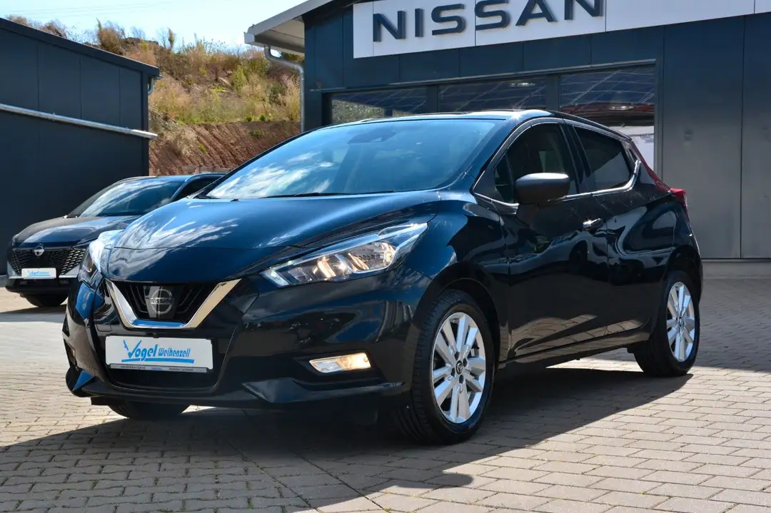 3. Bremsleuchte, 4 Lautsprecher, Airbag Beifahrerseite abschaltbar, Airbag Fahrer-/Beifahrerseite und Seitenairbag vorn, Audio-Paket, Audiobedienung am Lenkrad, Automatische Fahrlichtschaltung, AUX-IN-Anschluss (AUX-IN), Außenspiegel elektr. verstellbar, Außenspiegel Wagenfarbe, Außentemperaturanzeige, Bluetooth-Schnittstelle, Bordcomputer, Bremsassistent (Nissan Brake-Assist), Dachantenne, Dachspoiler, Drehzahlmesser, Einparkhilfe hinten, Fahrassistenz-System: Berganfahr-Assistent, Fahrassistenz-System: Notbrems-Assistent, Frontscheibe Verbundglas, Gepäckraumabdeckung / Rollo, Geschwindigkeits-Begrenzeranlage, Getränkehalter hinten, Getränkehalter vorn, Gurtstraffer, Heckscheibe heizbar, Heckscheibenwischer, Hochtöner, Innenraumfilter: Pollenfilter, Isofix-Aufnahmen für Kindersitz, Karosserie: 5-türig, Klimaautomatik, Kopf-Airbag-System, Kopfstützen vorn und hinten verstellbar, Lenkrad (Sport), Lenksäule (Lenkrad) höhen-/längsverstellbar, Leseleuchte vorn, Motor 1,0 Ltr. - 74 kW 12V KAT, Nebelschlussleuchte, Radioempfang digital (DAB), Reifen-Reparaturset, Reifendruck-Kontrollsystem, Rücksitzbank umklappbar, Schadstoffarm nach Abgasnorm Euro 6d-TEMP, Scheibenwischer mit Intervallschaltung, Sitz vorn links höhenverstellbar, Sitzbezug / Polsterung: Stoff, Sonnenblenden mit Spiegel, Start/Stop-Anlage, Steckdose (12V-Anschluß), TFT-Farbdisplay (5,0 Zoll), Touchscreen-Farbdisplay (7,0 Zoll) in Mittelkonsole, Türgriffe innen verchromt, Türverkleidung mit Stoffeinsatz, USB-Schnittstelle