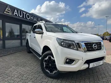 Airbag Beifahrerseite abschaltbar, Airbag Fahrer-/Beifahrerseite, Audiobedienung am Lenkrad, Ausstattungs-Paket: Nissan Connect Navigationssystem mit Around View Monitor, Automatische Fahrlichtschaltung, Außenspiegel elektr. anklappbar, Außenspiegel elektr. verstellbar, Außenspiegel heizbar, Außenspiegel mit Chromblende, Außentemperaturanzeige, Bremsassistent (Nissan Brake-Assist), Chromeinfassung für Nebelscheinwerfer, Coming-Home-Lichtfunktion (Friendly Lightning), Differentialsperre, Differentialsperre mit begrenztem Schlupf, Einparkhilfe hinten, Fahrassistenz-System: Autonomer Notbrems-Assistent, Fahrassistenz-System: Bergabfahr-Assistent, Fahrassistenz-System: Berganfahr-Assistent, Fahrer-Informations-System (FIS) mit Farbdisplay, Fensterheber elektrisch hinten, Frontscheibe mit Bandfilter oben, Geländeuntersetzung, Gurtstraffer, Heckscheibe heizbar, Innenspiegel mit Abblendautomatik, Isofix-Aufnahmen für Kindersitz, Karosserie/Aufbau: Doppelkabine (Double-Cab), Karosserie/Aufbau: Pick-Up, Klimaautomatik 2-Zonen, Knieairbag Fahrerseite, Kopf-Airbag-System, Kopfstützen hinten, Lenksäule (Lenkrad) verstellbar, LM-Felgen, Luftdüsen hinten, Metallic-Lackierung, Motor 2,3 Ltr. - 140 kW dCi Diesel KAT, Optik-Paket, Radioempfang digital (DAB), Radstand 3150 mm, Reserverad in Fahrbereifung, Schadstoffarm nach Abgasnorm Euro 5, Scheibenwischer mit Intervallschaltung, Schienensystem Lastenverankerung, Schmutzfänger hinten, Schmutzfänger vorn, Seitenairbag, Sitz vorn links elektr. verstellbar, Sitz vorn links höhenverstellbar, Sitzbezug / Polsterung: Leder, Sitzheizung vorn, Sprachbediensystem Spracherkennung, Start-Stop-Knopf, Start/Stop-Anlage, Steckdose (12V-Anschluß), Stoßfänger hinten verchromt, Stoßfänger vorn Wagenfarbe, Trittbretter seitlich, Verglasung hinten abgedunkelt