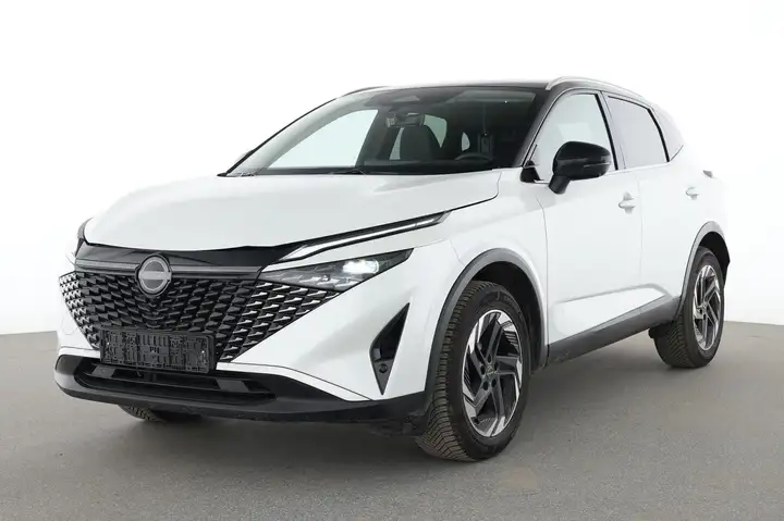 3. Bremsleuchte, Airbag Fahrer-/Beifahrerseite, Ambiente-Beleuchtung, Around View Monitor (360° Umgebungsansicht), Ausstattungs-Paket: Nissan Connect Navigationssystem mit Around View Monitor, Auto-Hold-Funktion, Automatische Fahrlichtschaltung, Außenspiegel elektr. anklappbar, Außenspiegel elektr. verstell- und heizbar, Blinkleuchten LED in Außenspiegel integriert, Dachantenne im Haifischflossen-Design, Dachhimmel hellgrau, Elektr. Bremskraftverteilung (EBD), Fahrassistenz-System: aktiver Spurhalteassistent, mit korrigierendem Bremseingriff, Fahrassistenz-System: Auffahrwarnsystem (Forward Collision Warning, FCW), Fahrassistenz-System: Autonomer Notbrems-Assistent, Fahrassistenz-System: Berganfahr-Assistent, Fahrassistenz-System: Fernlichtassistent, Fahrassistenz-System: Intelligenter Parklenkassistent, Fahrassistenz-System: Moving Object Detection (MOD, Fußgängererkennung und bewegliche Objekterkennung), Fahrassistenz-System: Müdigkeitserkennungs-Sensor, Fahrassistenz-System: Querverkehrs-Assistent Heck (Rear Cross Traffic Alert, RCTA), Fahrassistenz-System: Sicherheitssystem ERA GLONASS mit automatischem Notruf, Fahrassistenz-System: Totwinkel-Assistent, Fahrassistenz-System: Verkehrszeichenerkennung, Fahrmodusschalter, Fensterheber elektrisch vorn + hinten, Gepäck-/Laderaum-Unterteilung (Flexi-Board), Geschwindigkeits-Begrenzeranlage, Geschwindigkeits-Regelanlage (Tempomat) mit Abstandsregelung, Handschuhfach beleuchtet, Heckleuchten LED, Innenraumfilter: Pollenfilter, Innenspiegel mit Abblendautomatik, Instrumentenanzeige TFT-Farbdisplay (12,3 Zoll), Isofix-Aufnahmen für Kindersitz, Karosserie: 5-türig, Klimaautomatik 2-Zonen, Kniepolster Mittelkonsole seitlich, Kofferraumbeleuchtung, Kopf-Airbag-System, Lastenverankerung / Verzurrösen, Lendenwirbelstütze Sitz vorn links, elektr. verstellbar, Lenksäule (Lenkrad) höhen-/längsverstellbar, Leseleuchten vorn und hinten, LM-Felgen, Mild-Hybrid 116 kW (Motor 1,3 Ltr. - 116 kW DIG-T MHEV), Mittelarmlehne hinten mit Getränkehalter, Modellpflege, Multimedia-System Nissan Connect, Navigationssystem, Nebelscheinwerfer LED, Nebelschlussleuchte LED, Notbrems-Warnblinkautomatik, Otto-Partikelfilter (OPF), Parkbremse elektrisch, Radstand 2666 mm, Reifendruck-Kontrollsystem, Rückfahrkamera, Rücksitz geteilt/klappbar, Schadstoffarm nach Abgasnorm Euro 6e, Schalt-/Wählhebelgriff Leder, Scheibenwischer mit Intervallschaltung, Seitenairbag, Seitenairbag vorn mitte (Center-Airbag), Service-System: Amazon Alexa, Sitz vorn links höhenverstellbar, Sitz vorn rechts höhenverstellbar, Sitzbezug / Polsterung: Stoff/Kunstleder, Sonnenblenden mit Spiegel (beleuchtet), Start/Stop-Anlage, Steckdose (12V-Anschluß) im Koffer-/Laderaum, Steckdose (12V-Anschluß) in Mittelkonsole, Touchscreen-Farbdisplay (12,3 Zoll), USB-Anschluss im Fond, USB-Schnittstelle, Verglasung hinten abgedunkelt