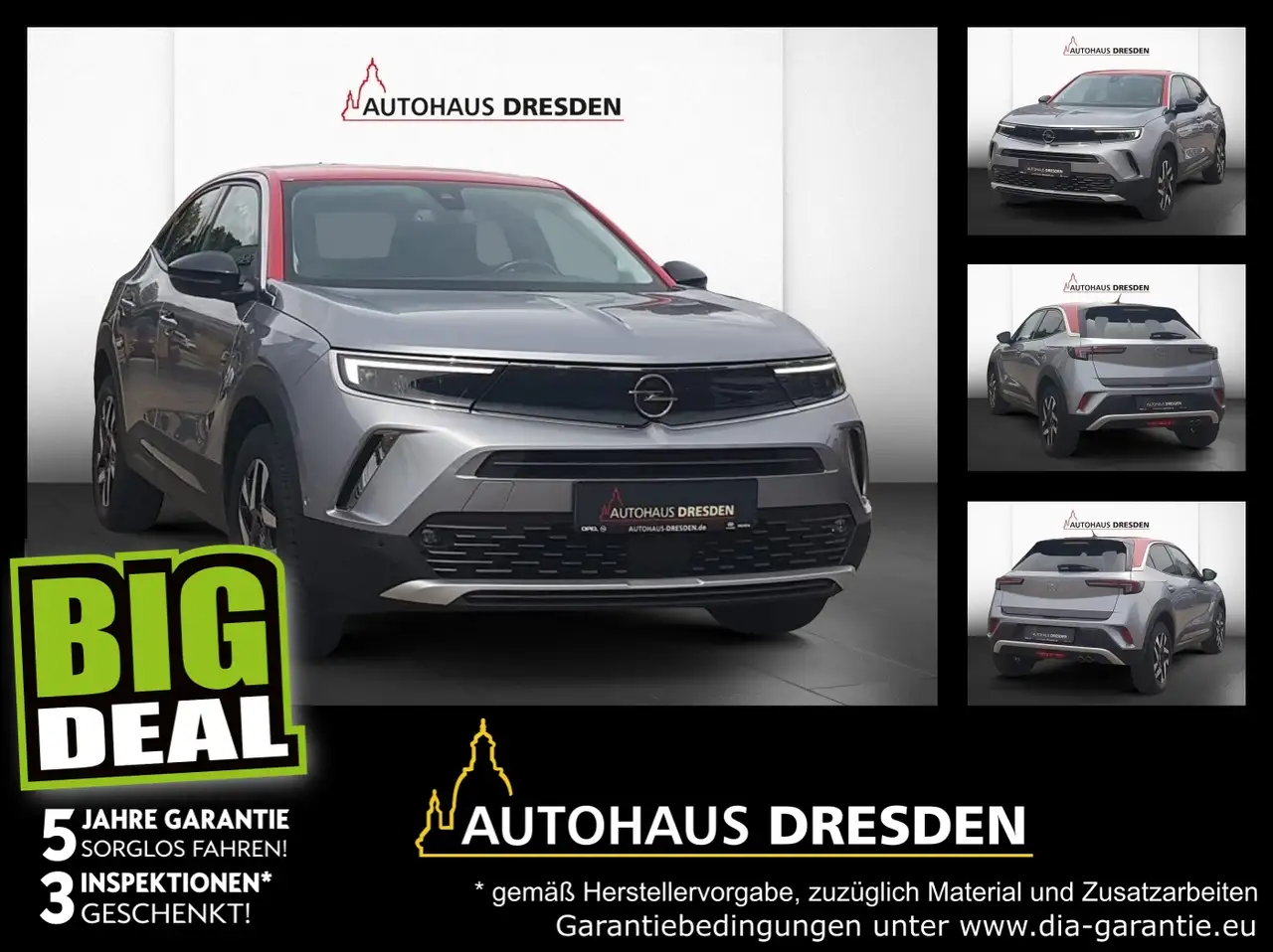 '' gilt für Opel-Modelle und sind ausschließlich für unsere regionalen Kunden im Raum Dresden sowie angrenzende Orte im Radius von 50 Kilometern erhältlich da es sich um eine Händler-Eigengarantie handelt.